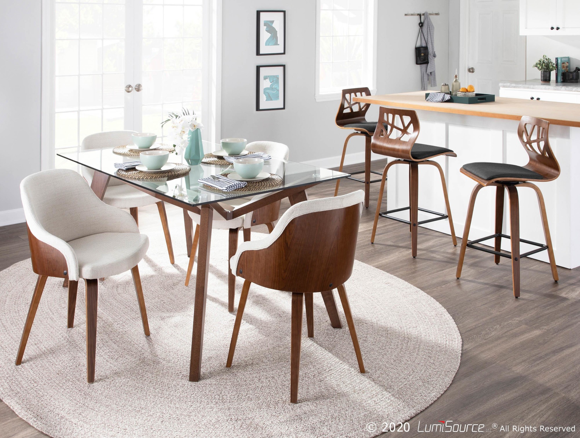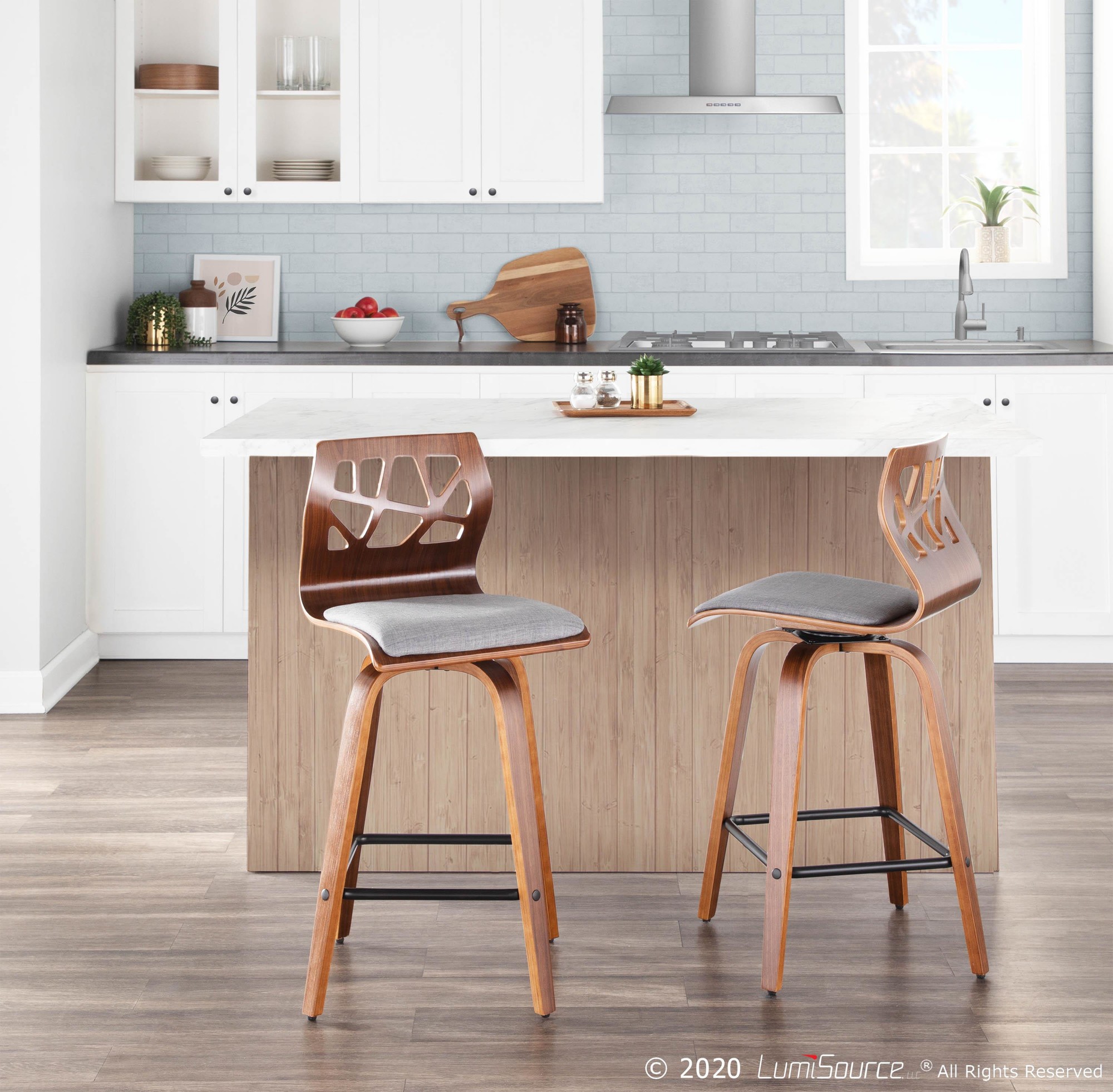 Oracle Walnut Bamboo Grey Faux Leather Mid-Century Modern Counter Stool