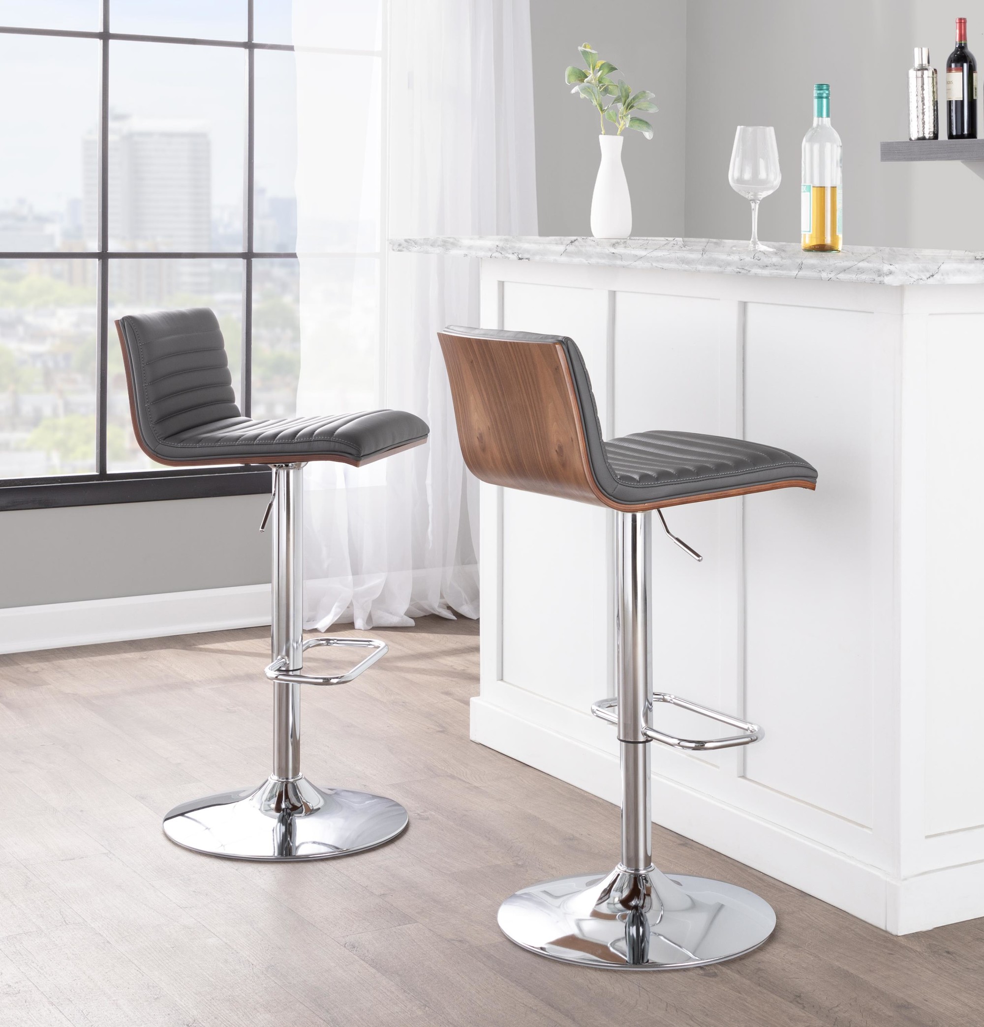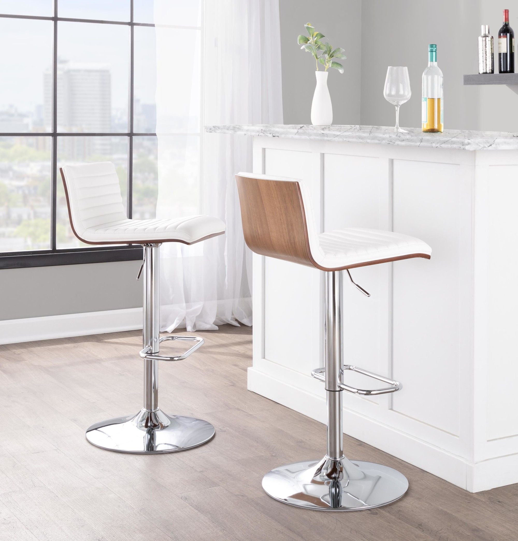 Trevi Walnut Wood Orange Fabric Mid-Century Counter Stools (Set of 2)