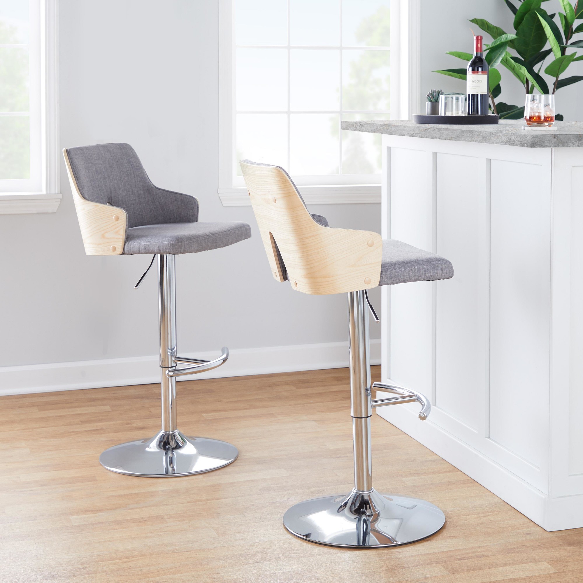 Vasari Walnut and Cream Swivel Adjustable Mid-Century Modern Barstool