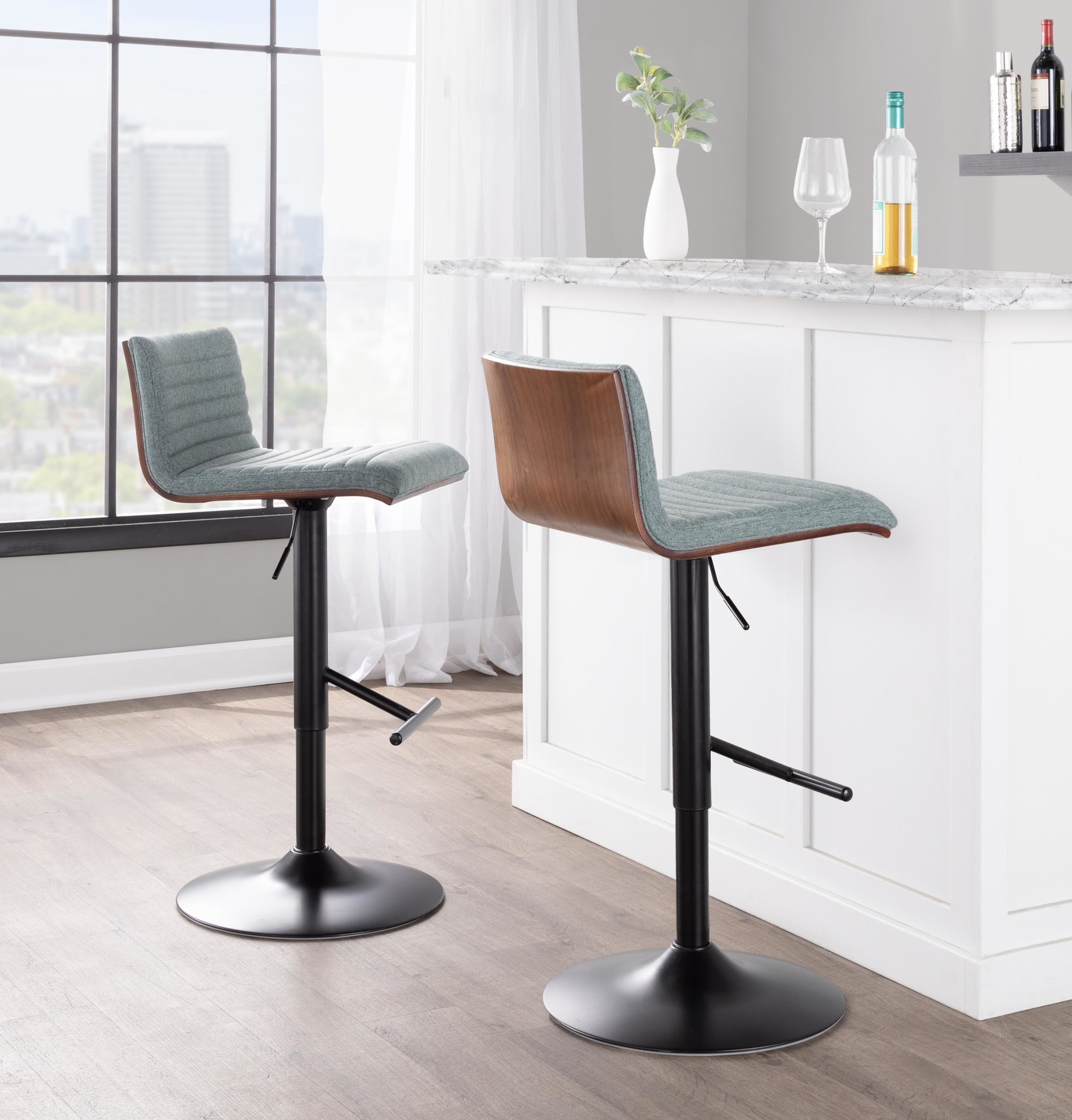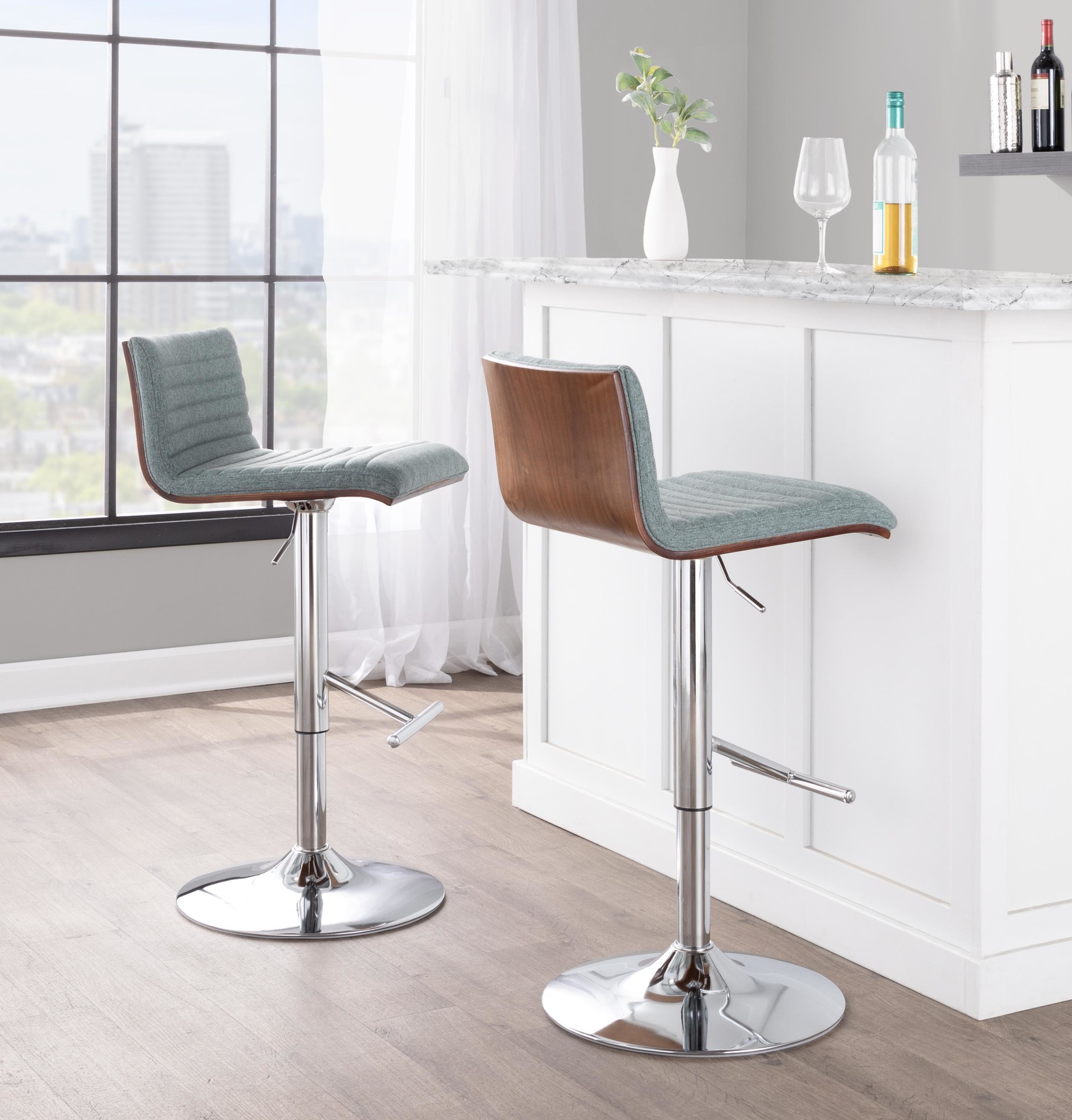 Trevi Walnut and Grey Swivel Mid-Century Modern Barstools (Set of 2)