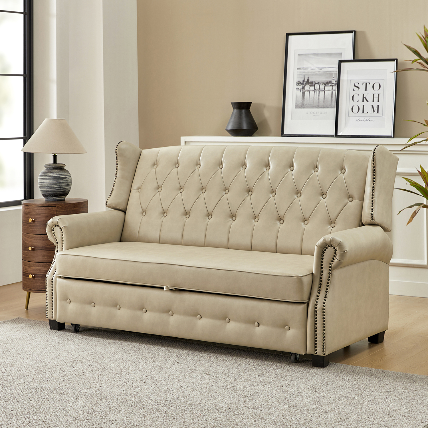 Paavo Beige Modern Boucle or Faux Leather Sofa