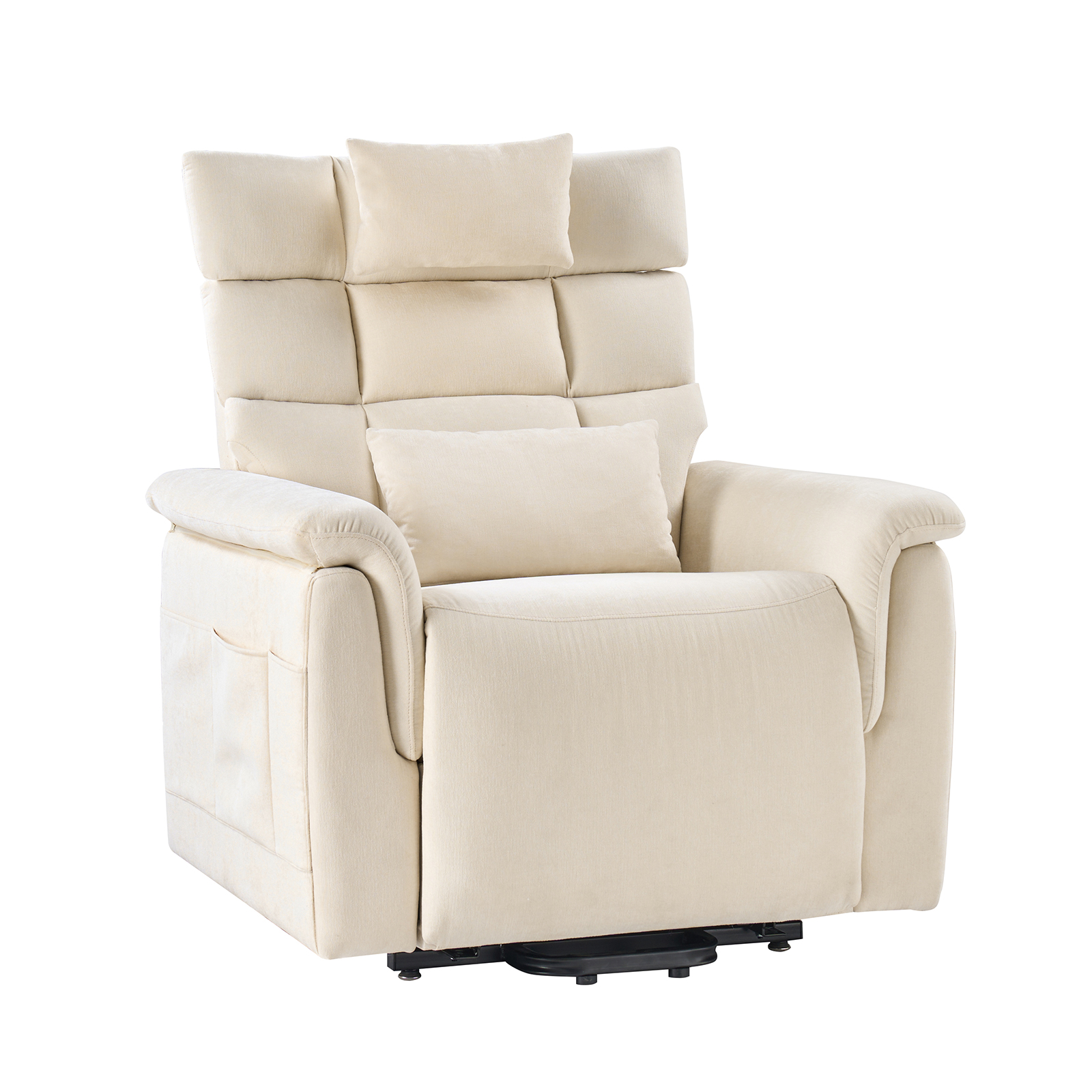 Ulysses Beige Genuine Leather Channel Tufted Sofa