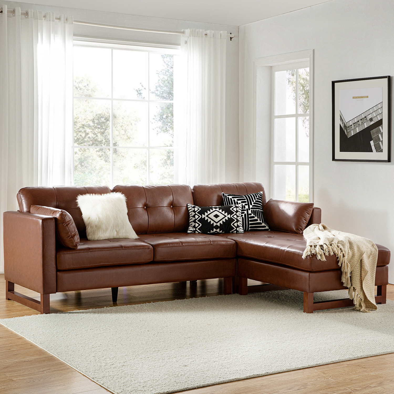 Monica Brown Faux Leather Tufted Metal Leg Loveseat
