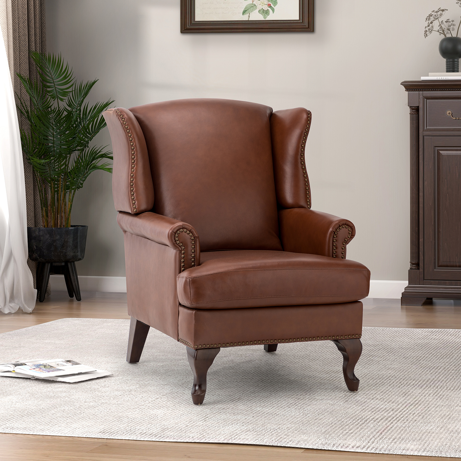 Amil Brown Genuine Leather Mid-Century Modern Nailhead Trim Recliner
