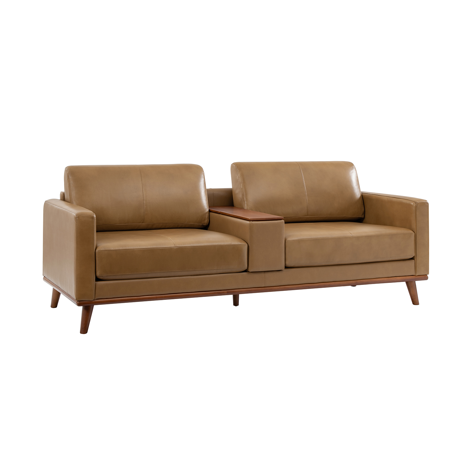 Paavo Walnut Modern Boucle or Faux Leather Sofa with Cushions