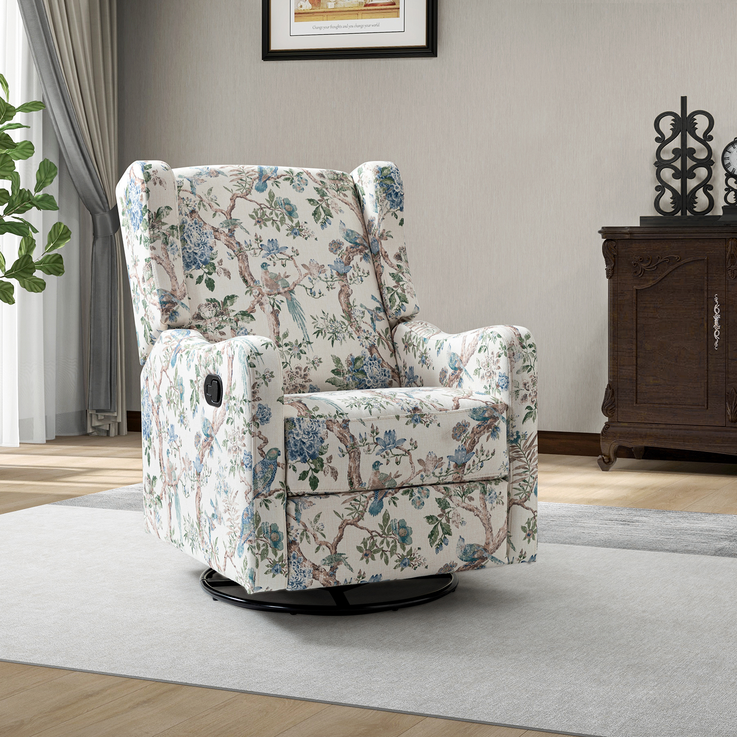 Rosalie Floral Wingback Nailhead Trim Manual Recliner