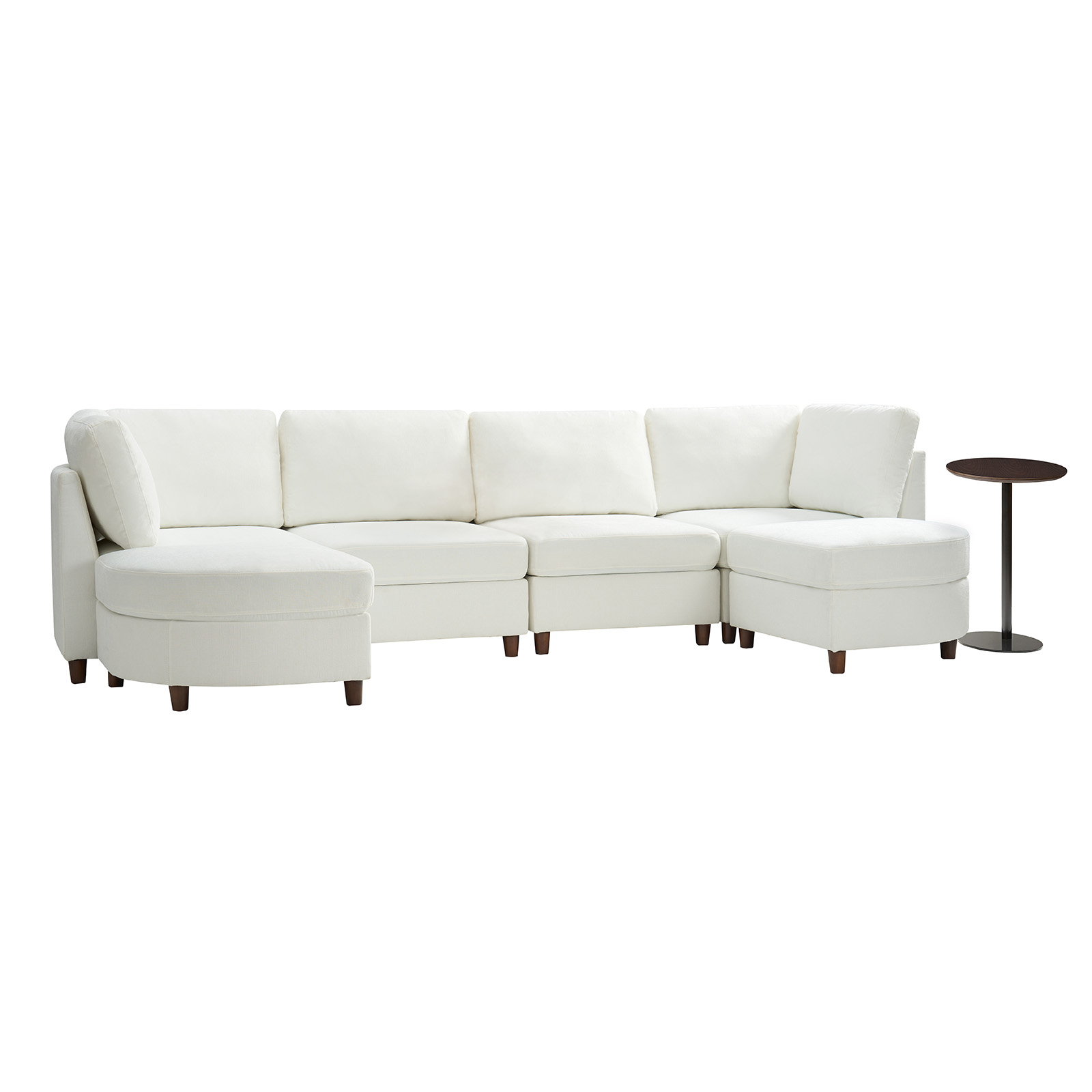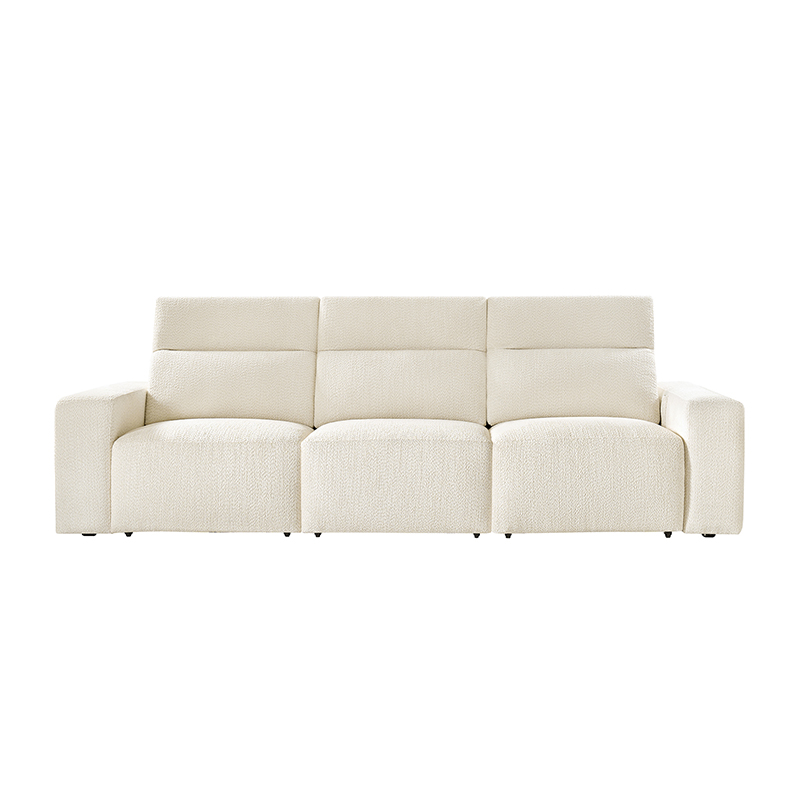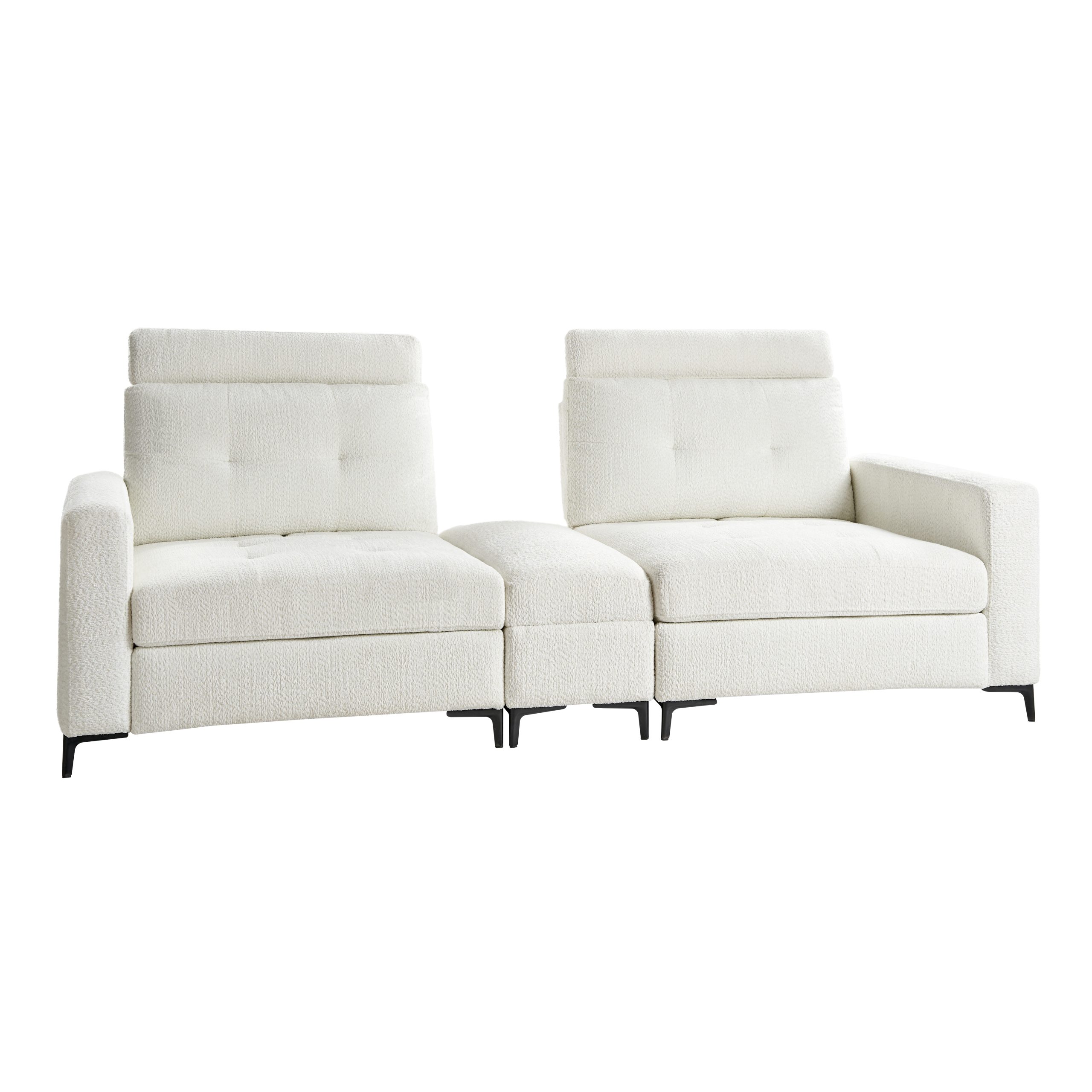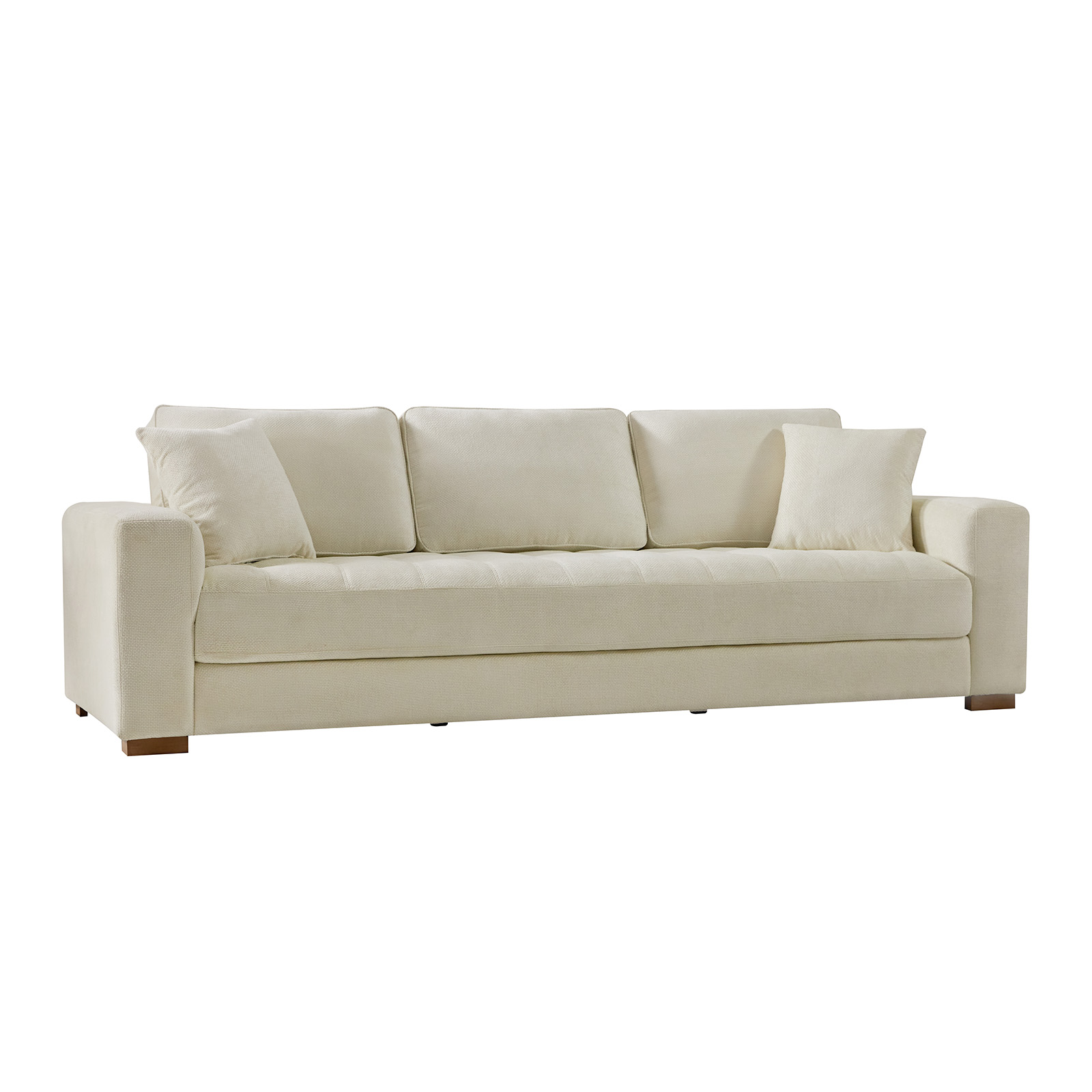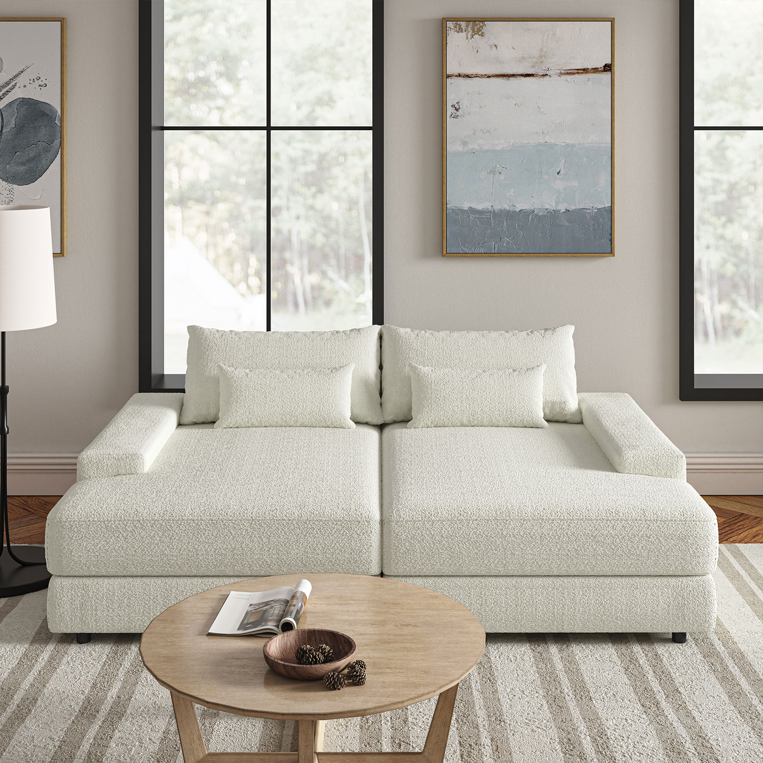 Paavo Ivory Modern Boucle or Faux Leather Sofa with Cushions