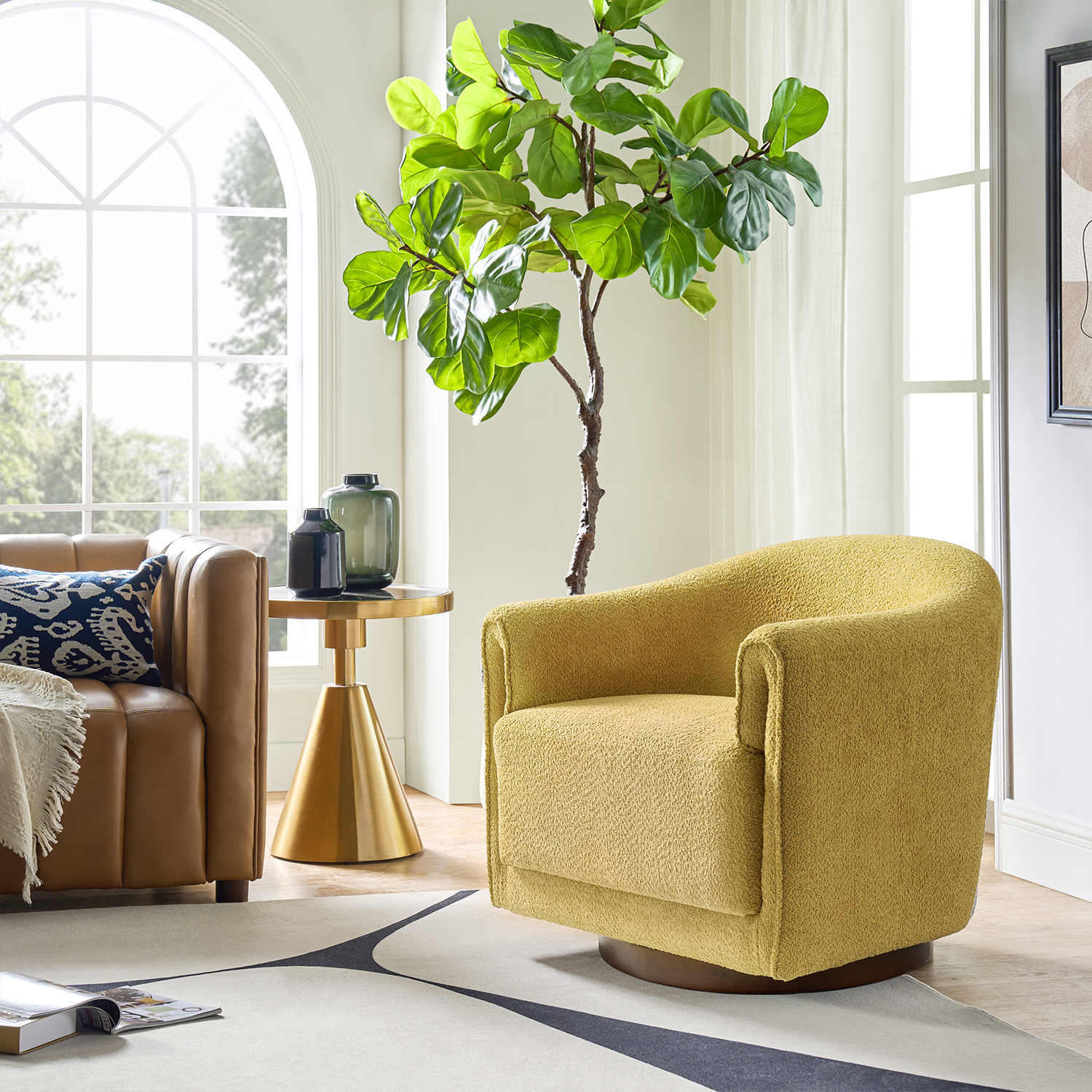 Belanda Yellow Velvet Flower Tufted Swivel Task Chair