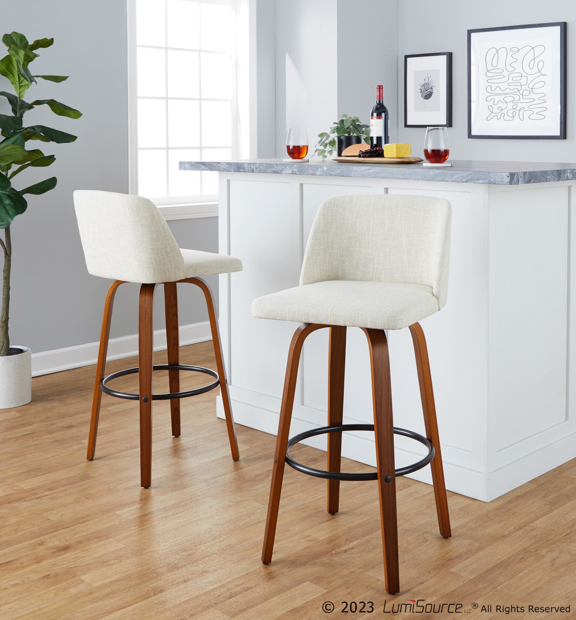 Vintage Mod Walnut and Stone Mid-Century Modern Barstools (Set of 2)