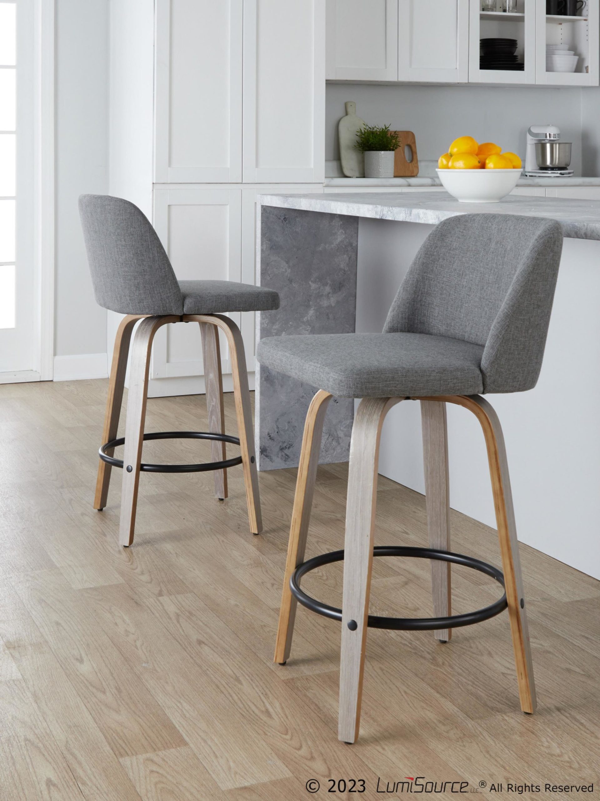 Vintage Flair Light Grey Mid-Century Modern Swivel Barstool (Set of 2)