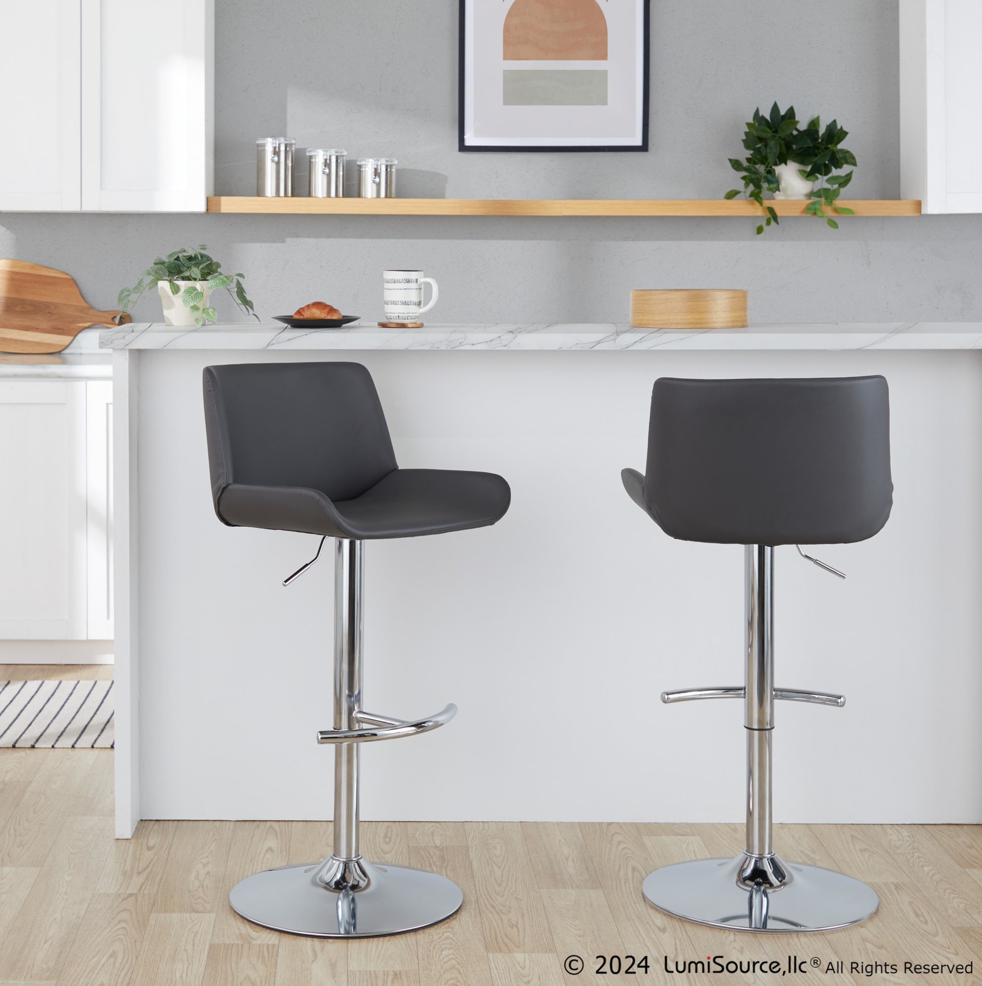 Trevi Walnut and Grey Swivel Mid-Century Modern Barstools (Set of 2)