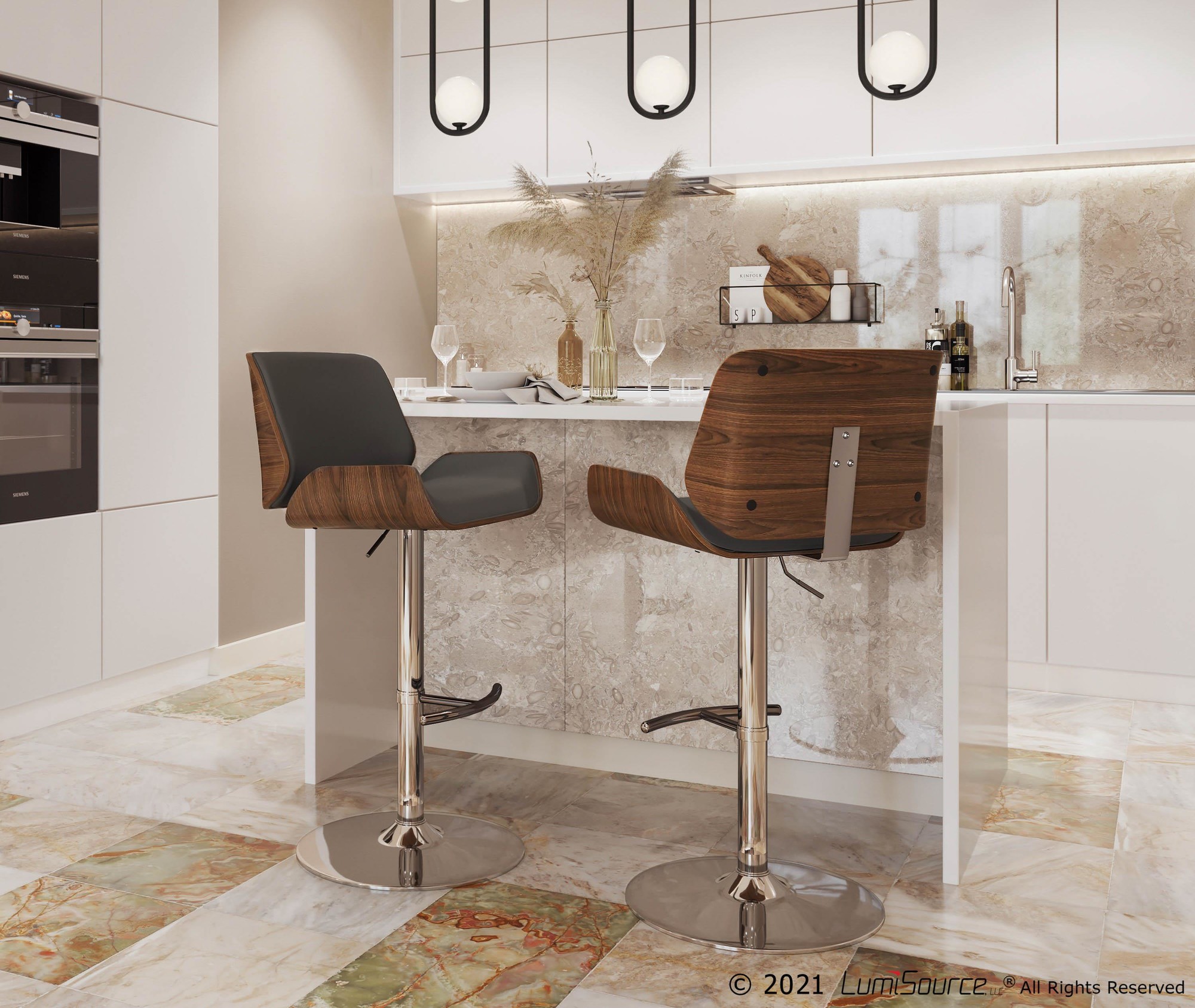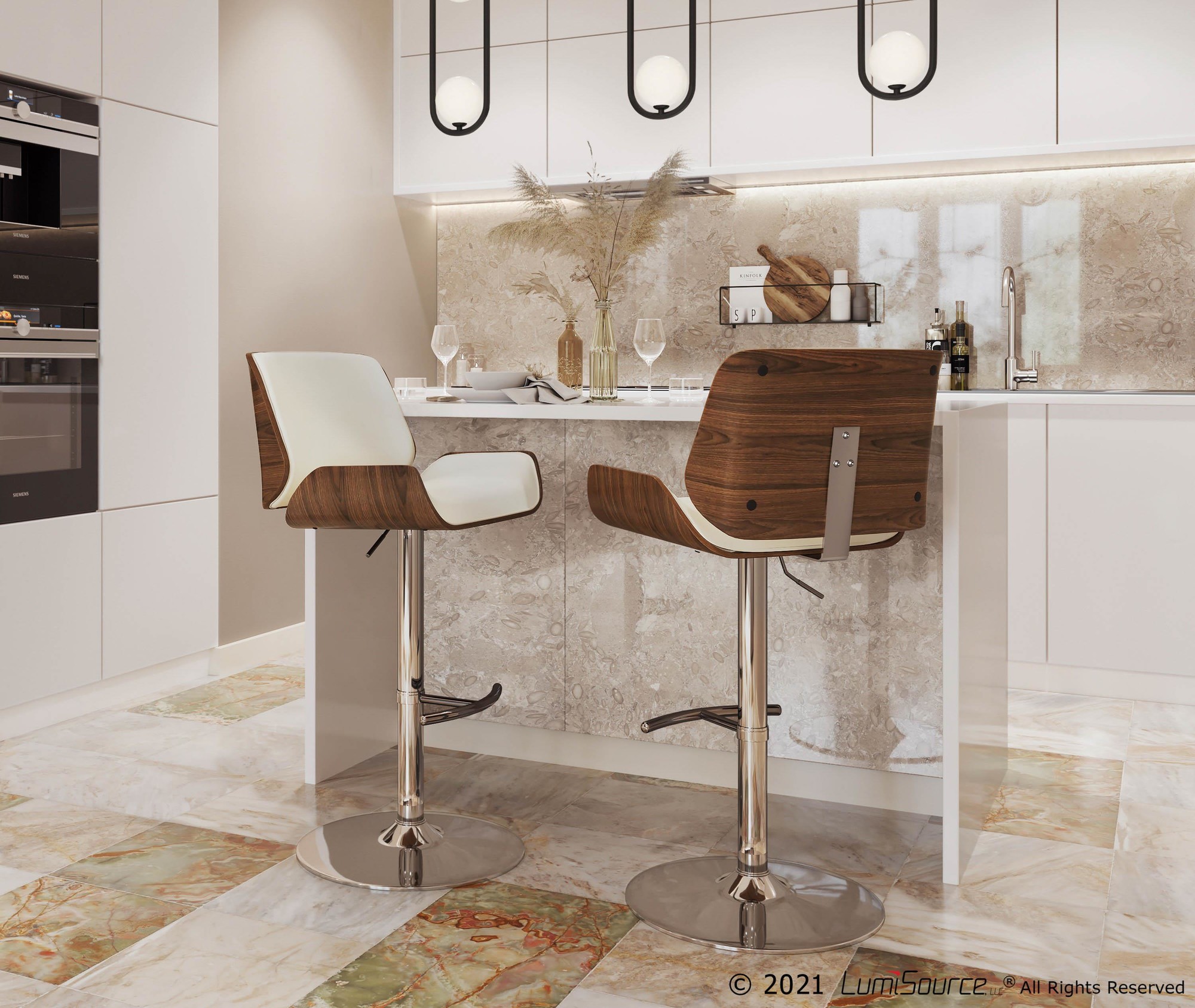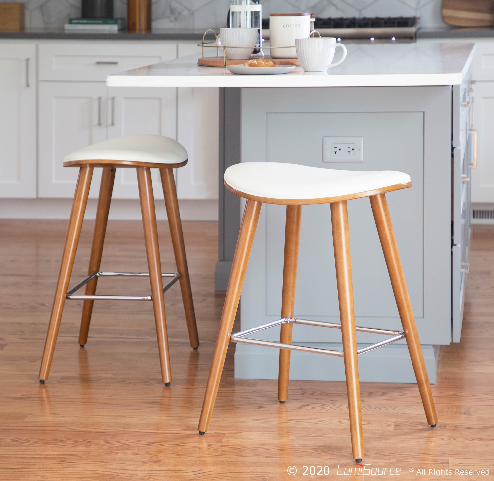 Trevi Walnut Wood Orange Fabric Mid-Century Counter Stools (Set of 2)