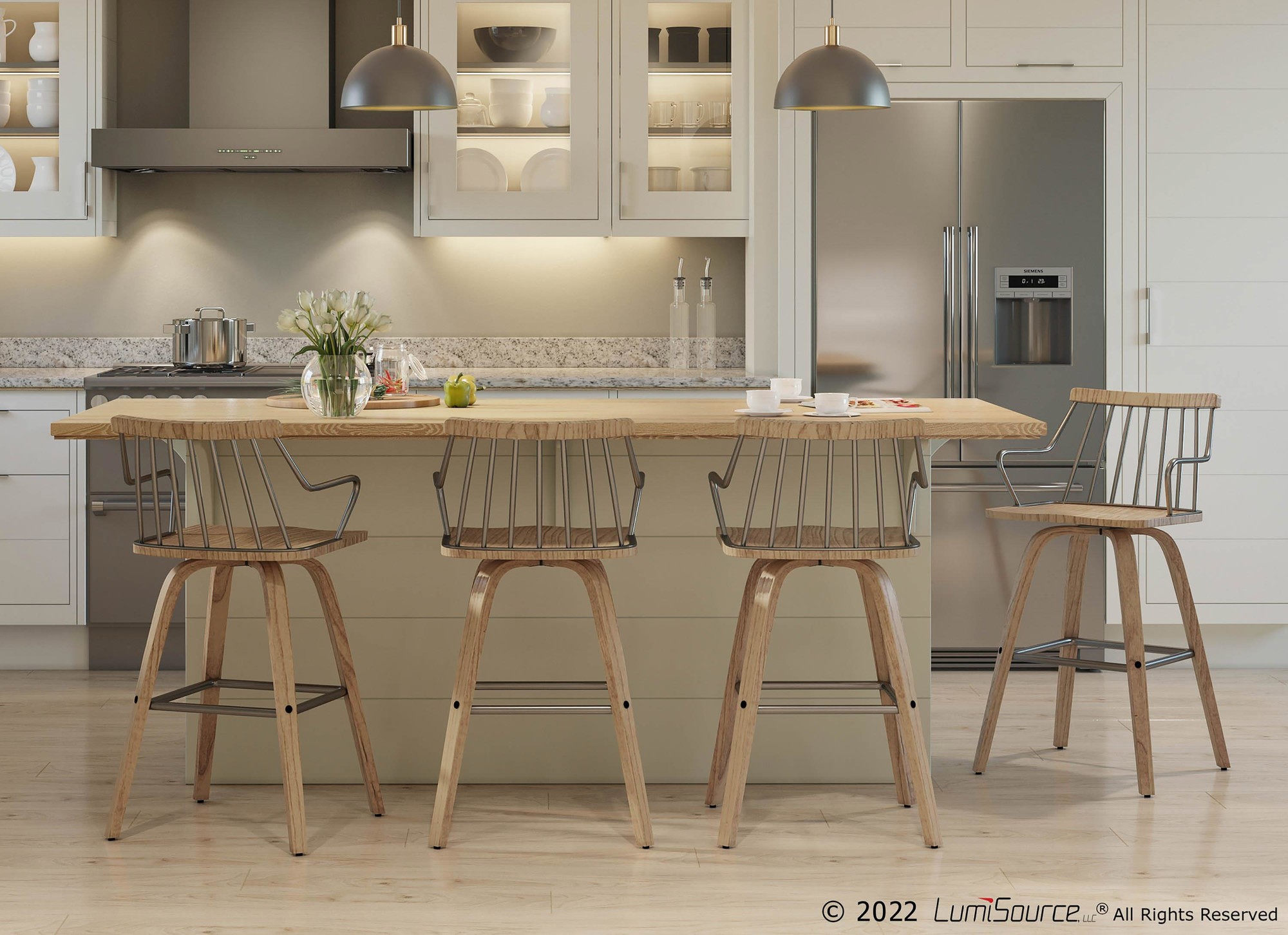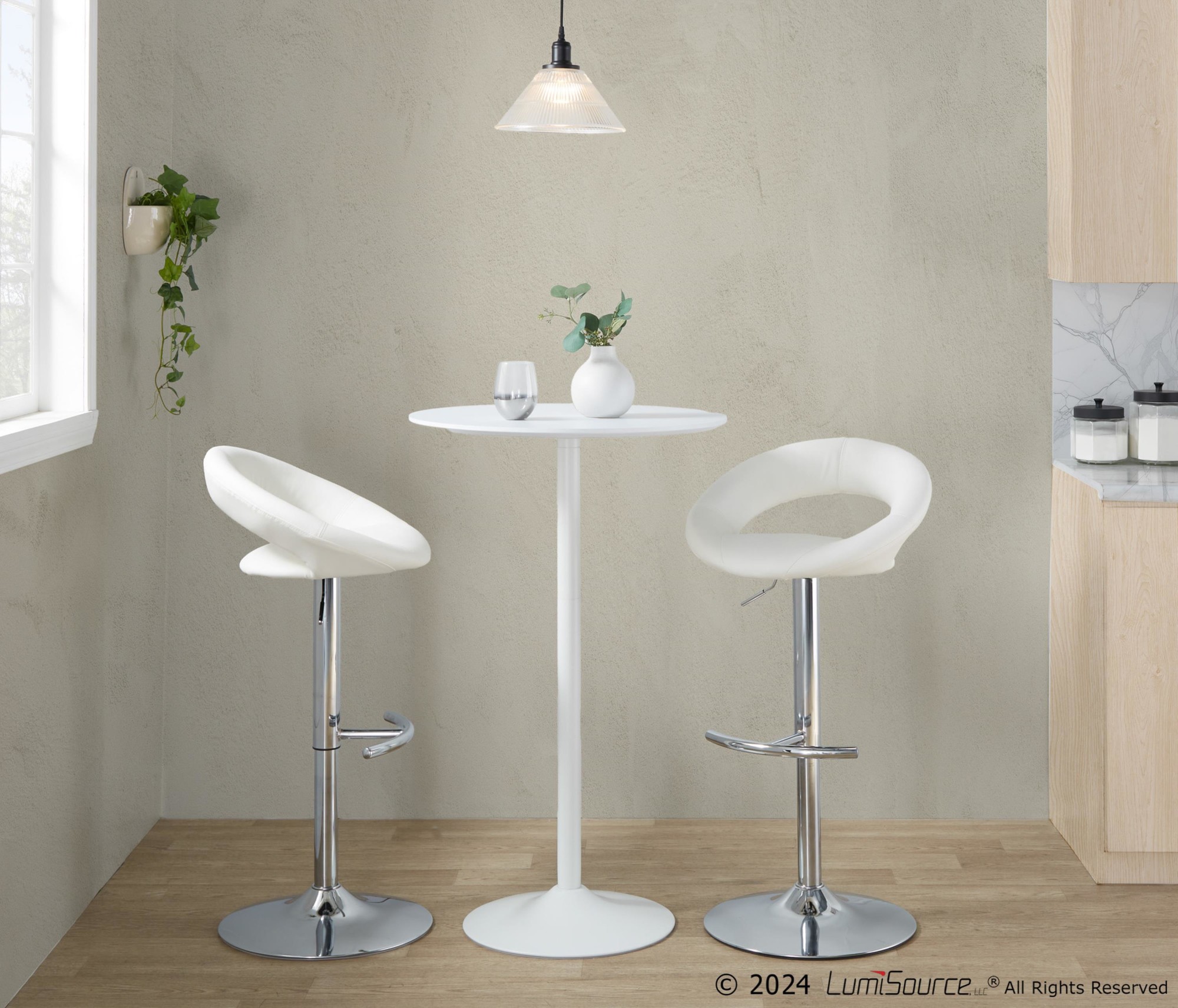 Toriano Chrome Cream Contemporary Adjustable Swivel Bar Stools (Set of 2)