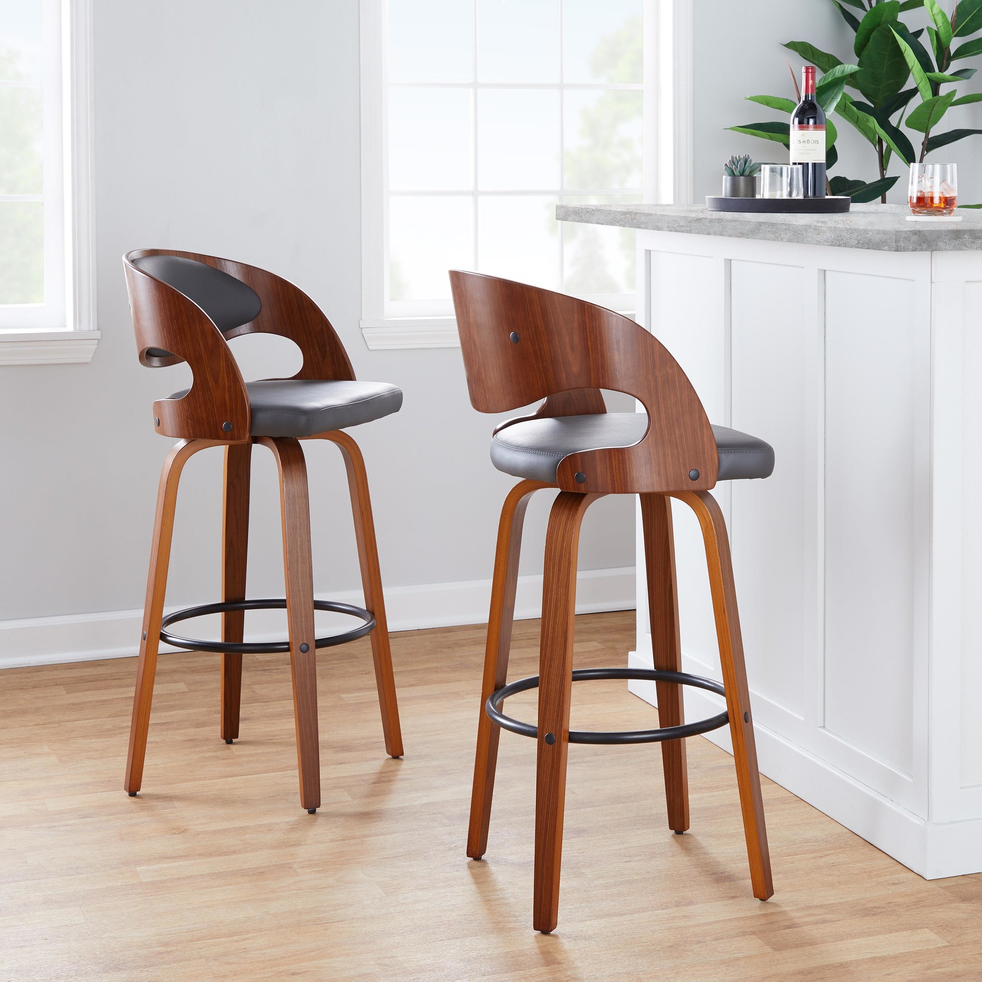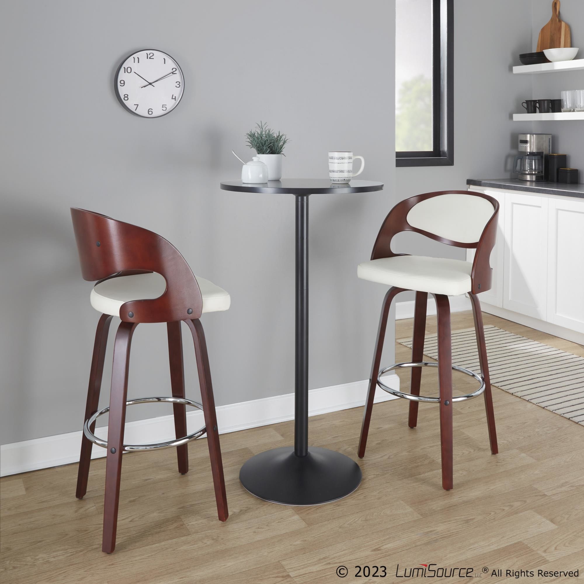 Toriano Chrome Black Faux Leather Contemporary Adjustable Bar Stools (Set of 2)