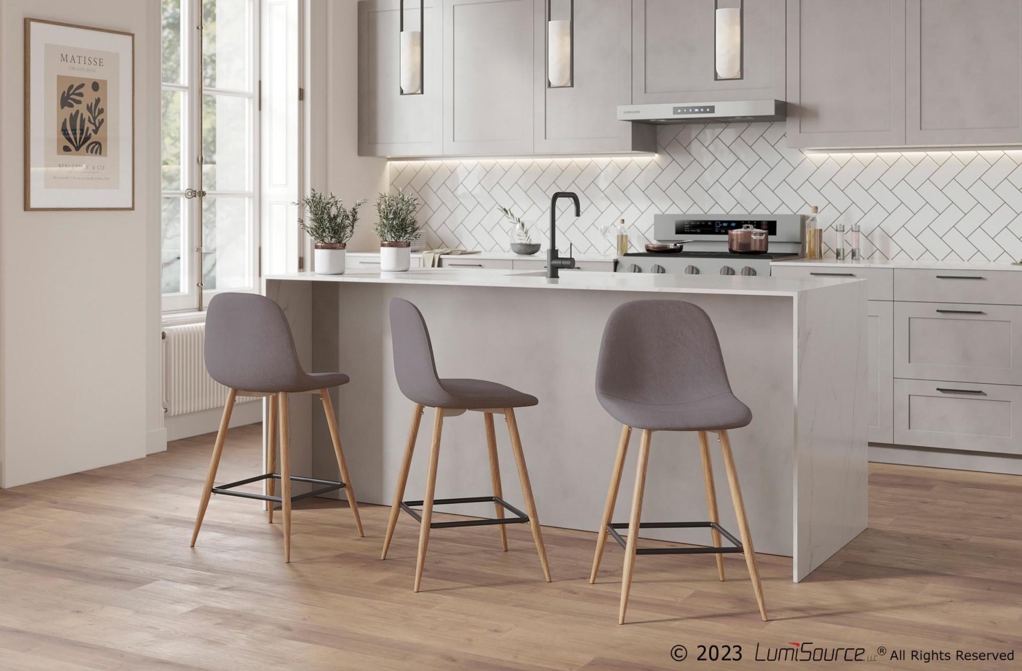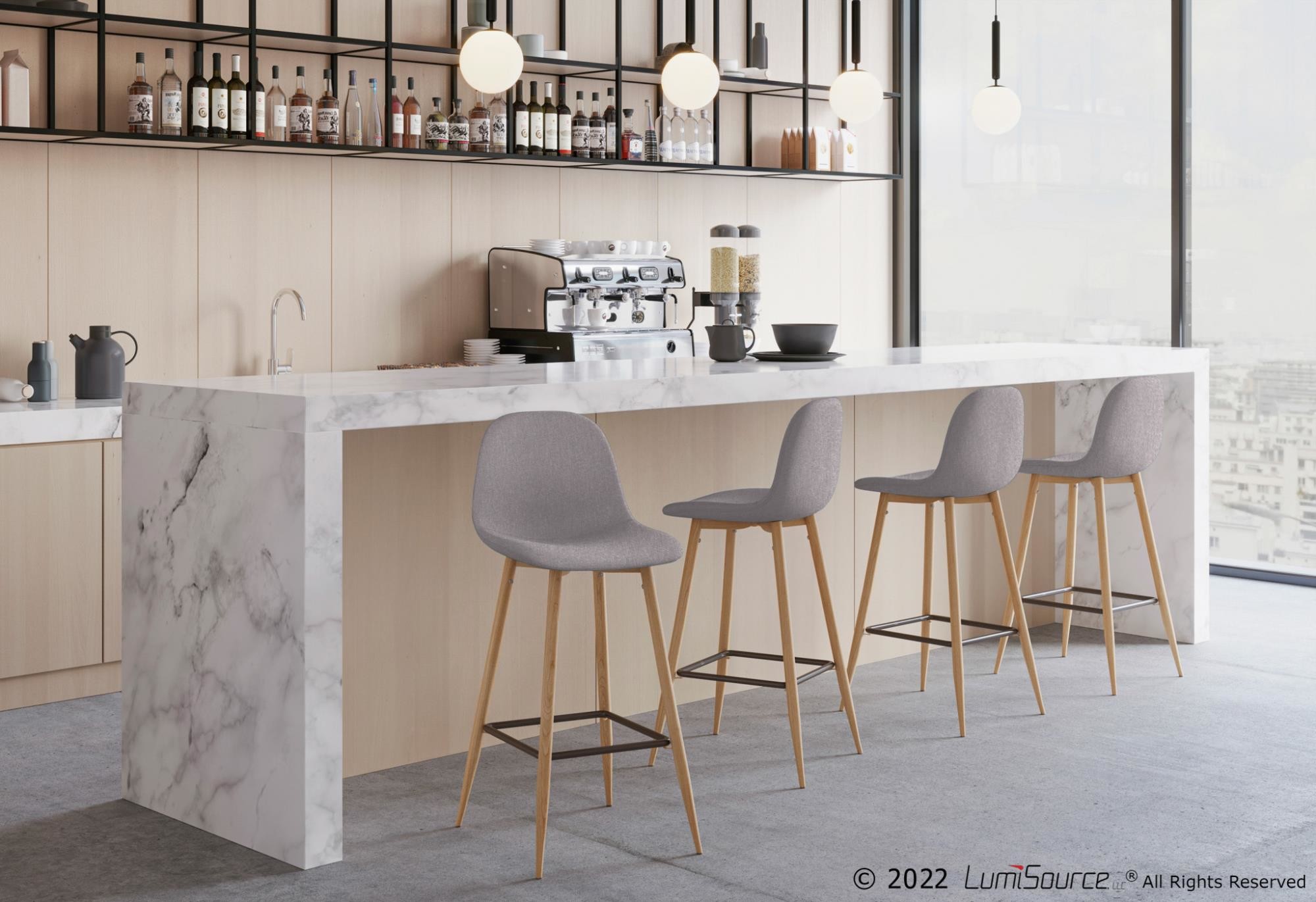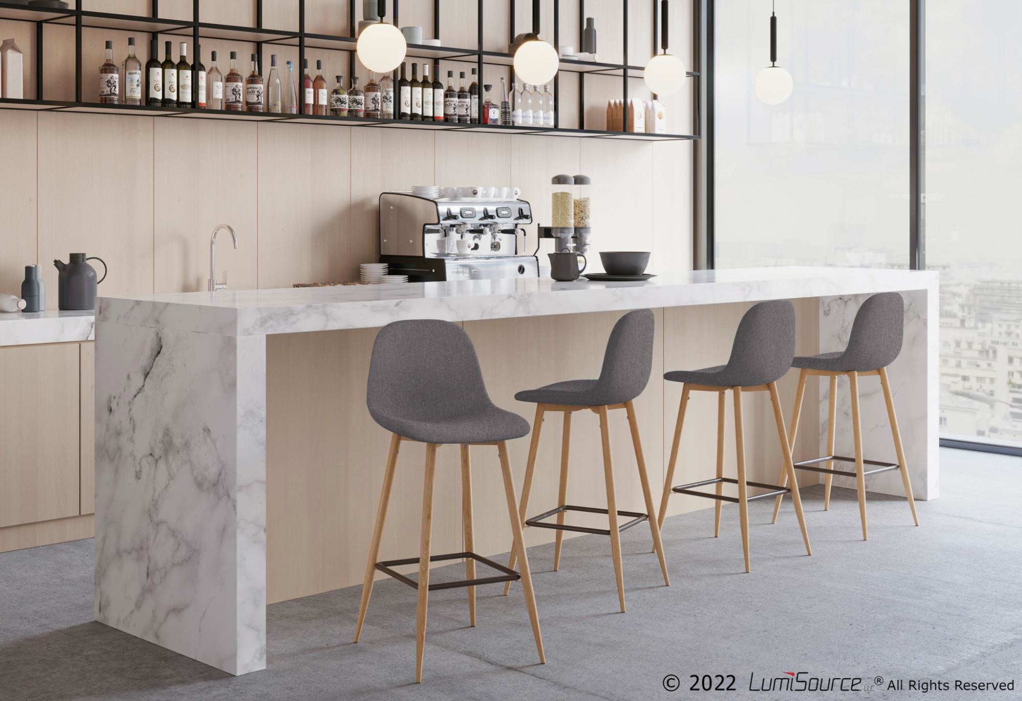 Toriano Grey Faux Leather Contemporary Swivel Barstools (Set of 2)