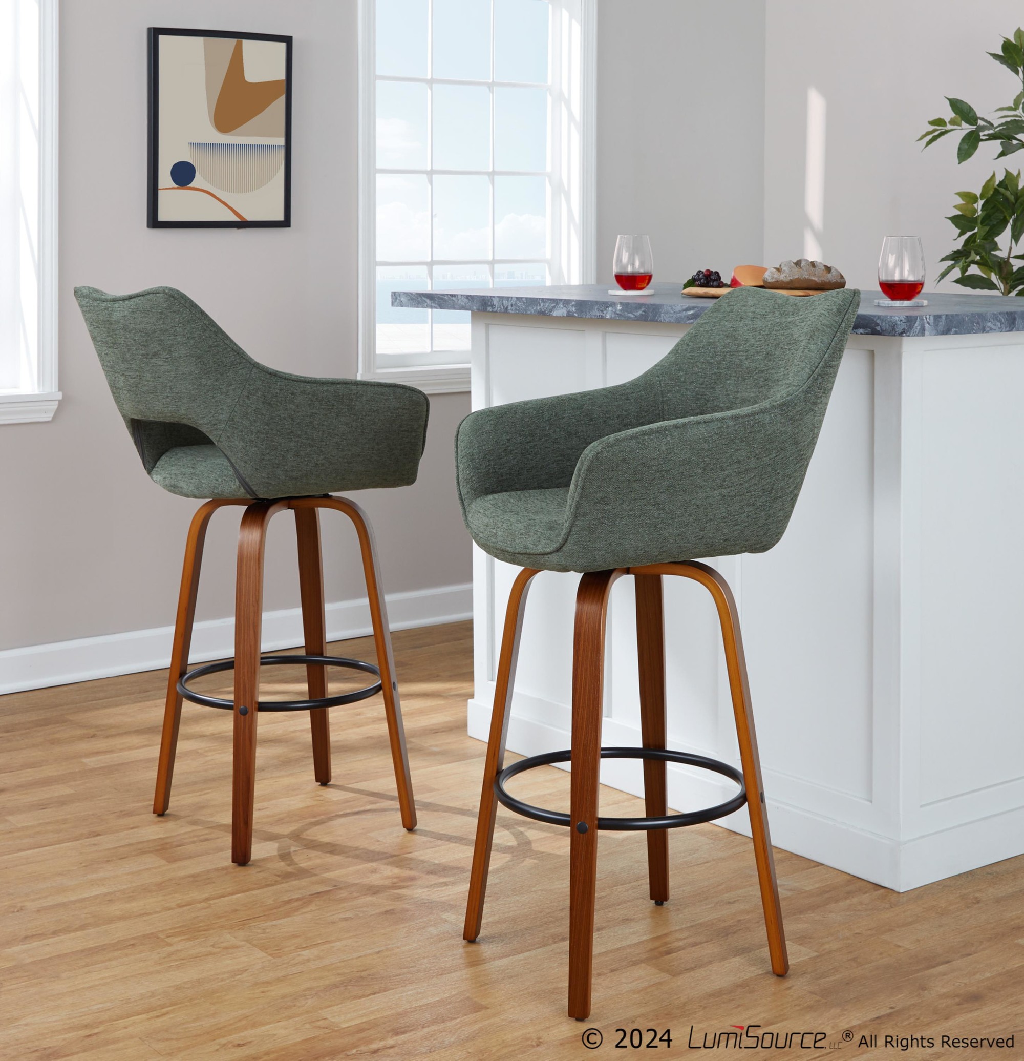 Toriano Black Faux Leather Gold Contemporary Adjustable Swivel Barstool (Set of 2)