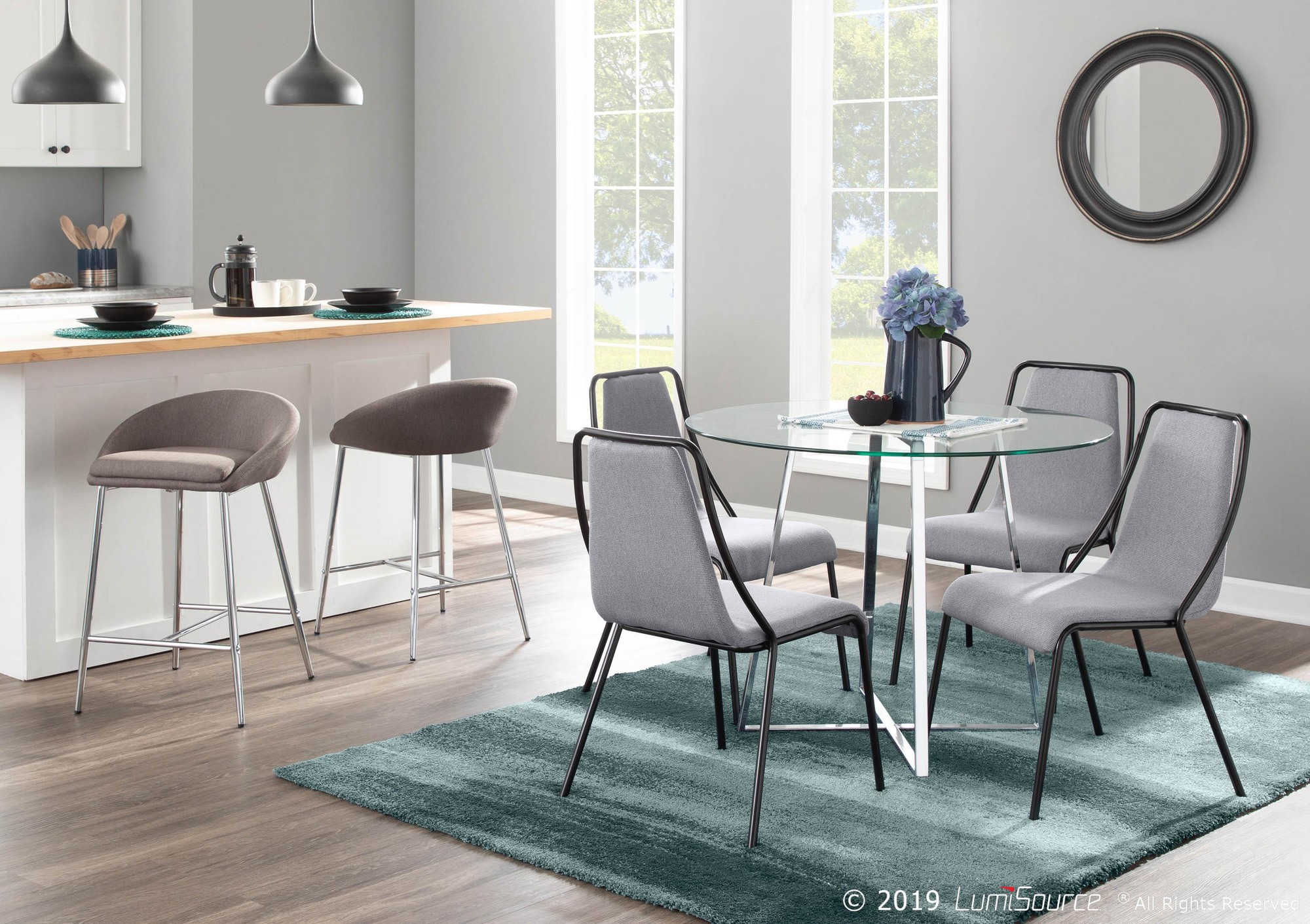 Toriano Grey Contemporary Swivel Adjustable Barstool (Set of 2)
