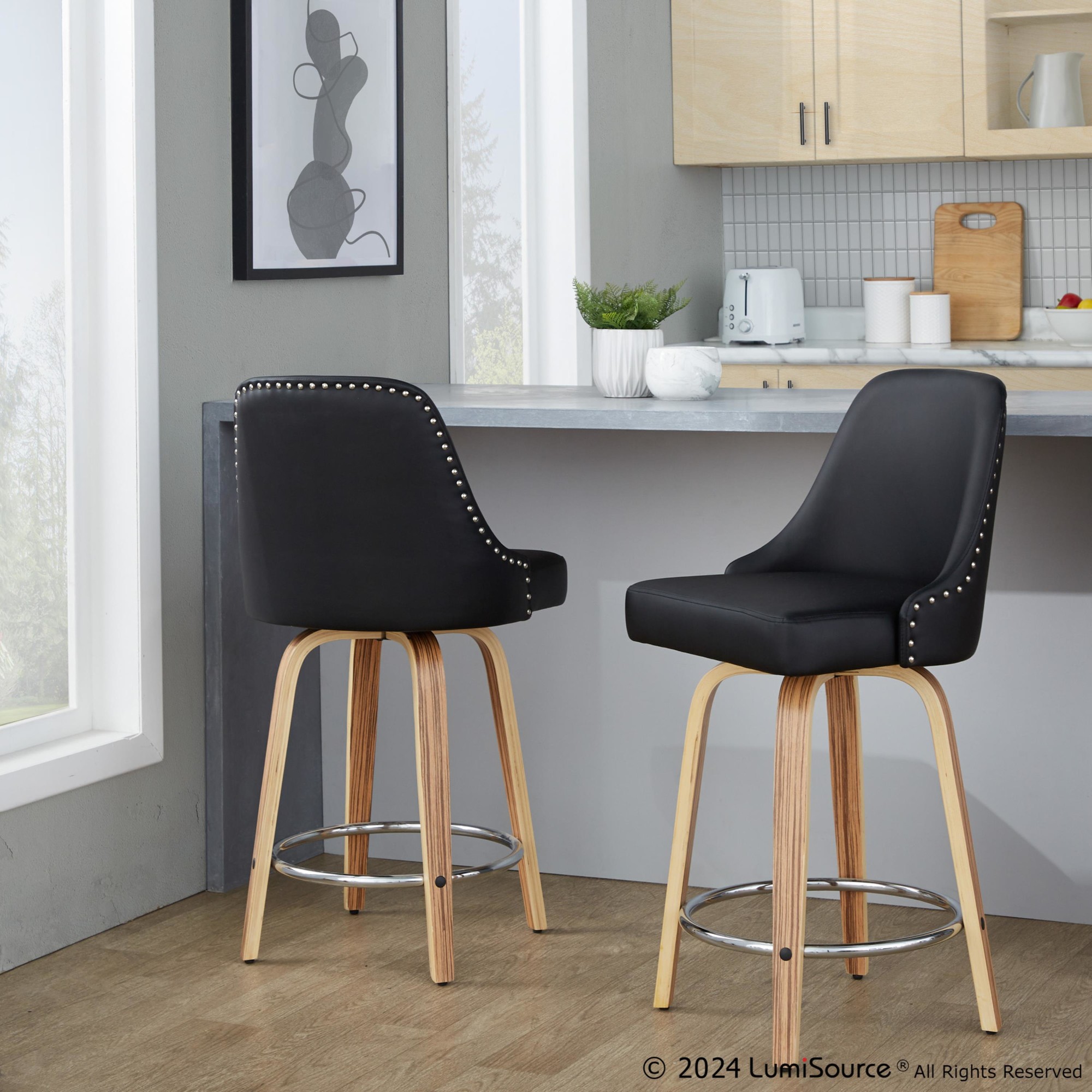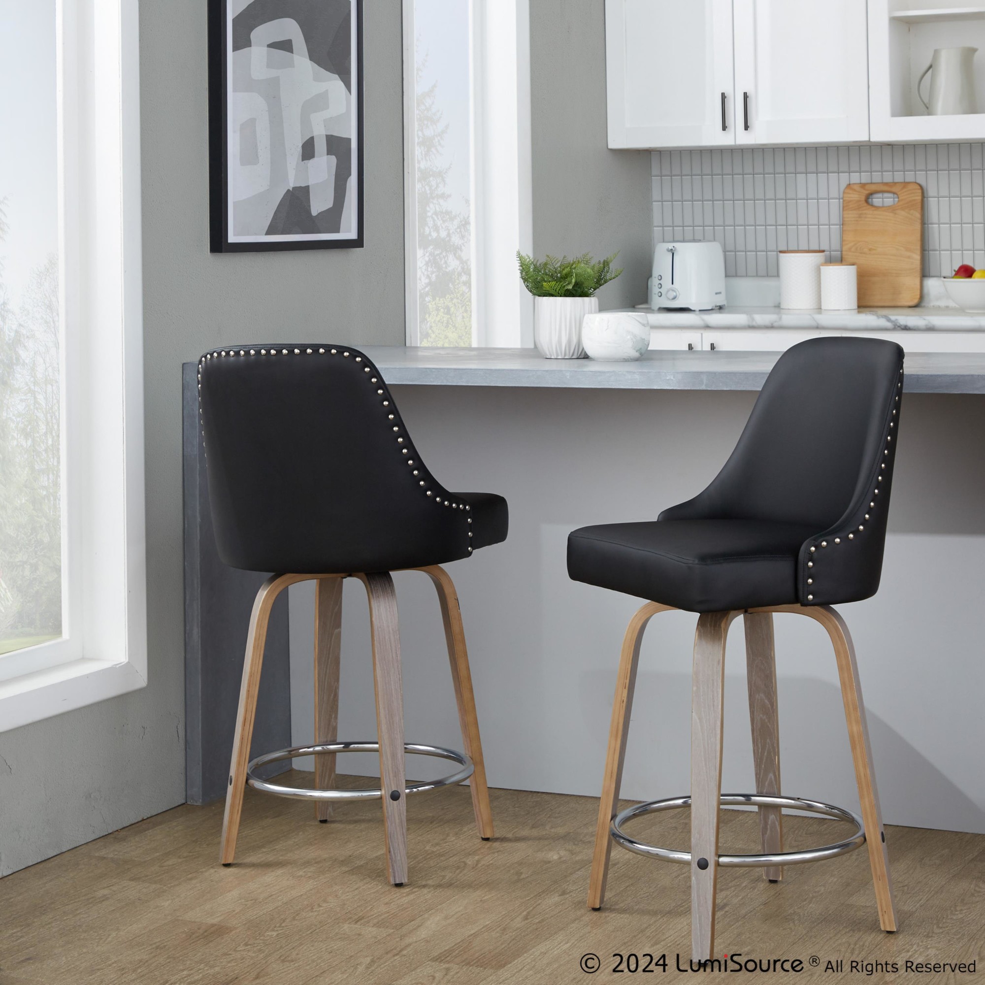 Toriano 30-Inch Whitewashed Wood Grey Noise Contemporary Swivel Barstool (Set of 2)