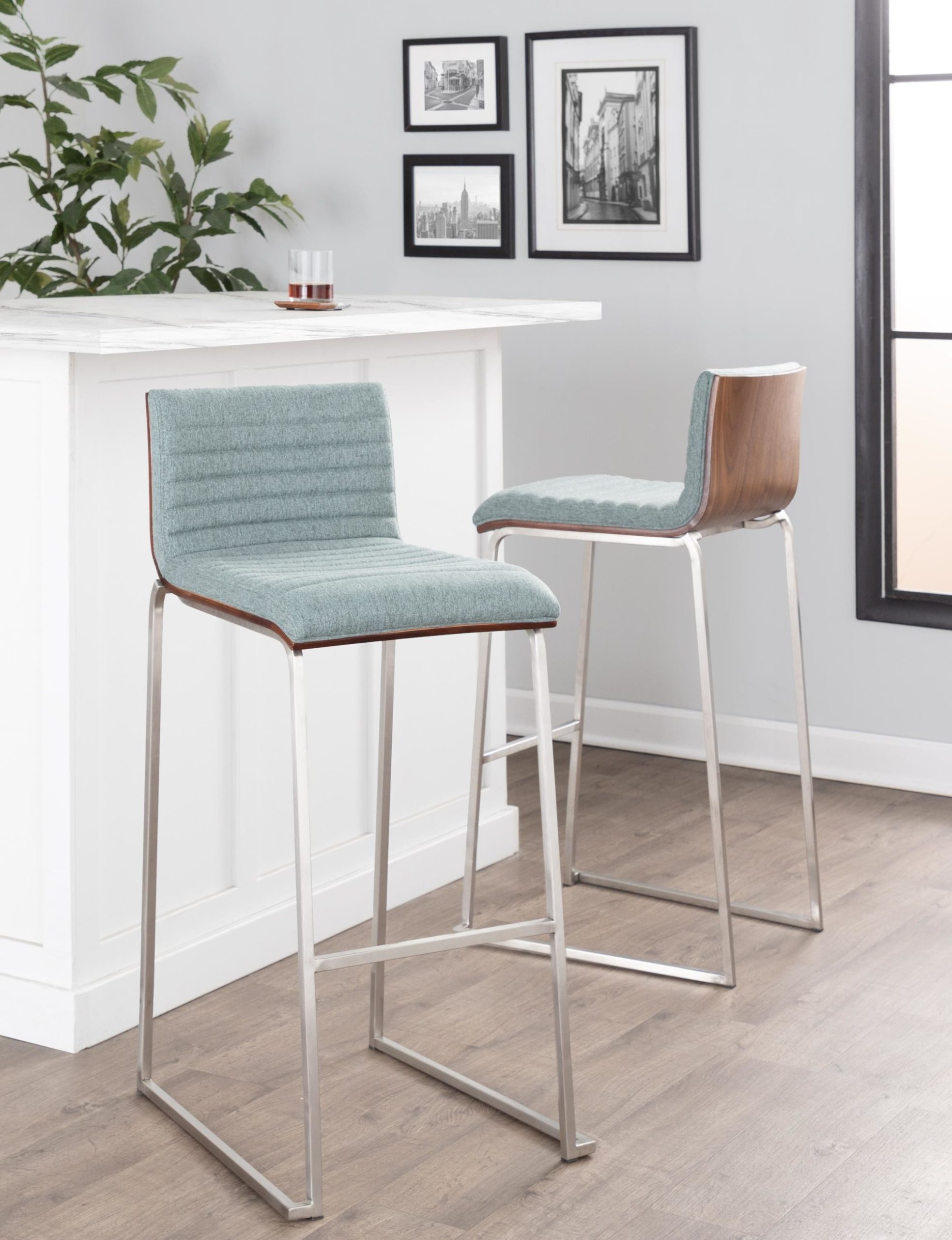 Mason Mara 30 Contemporary Walnut and White Barstools (Set of 2)