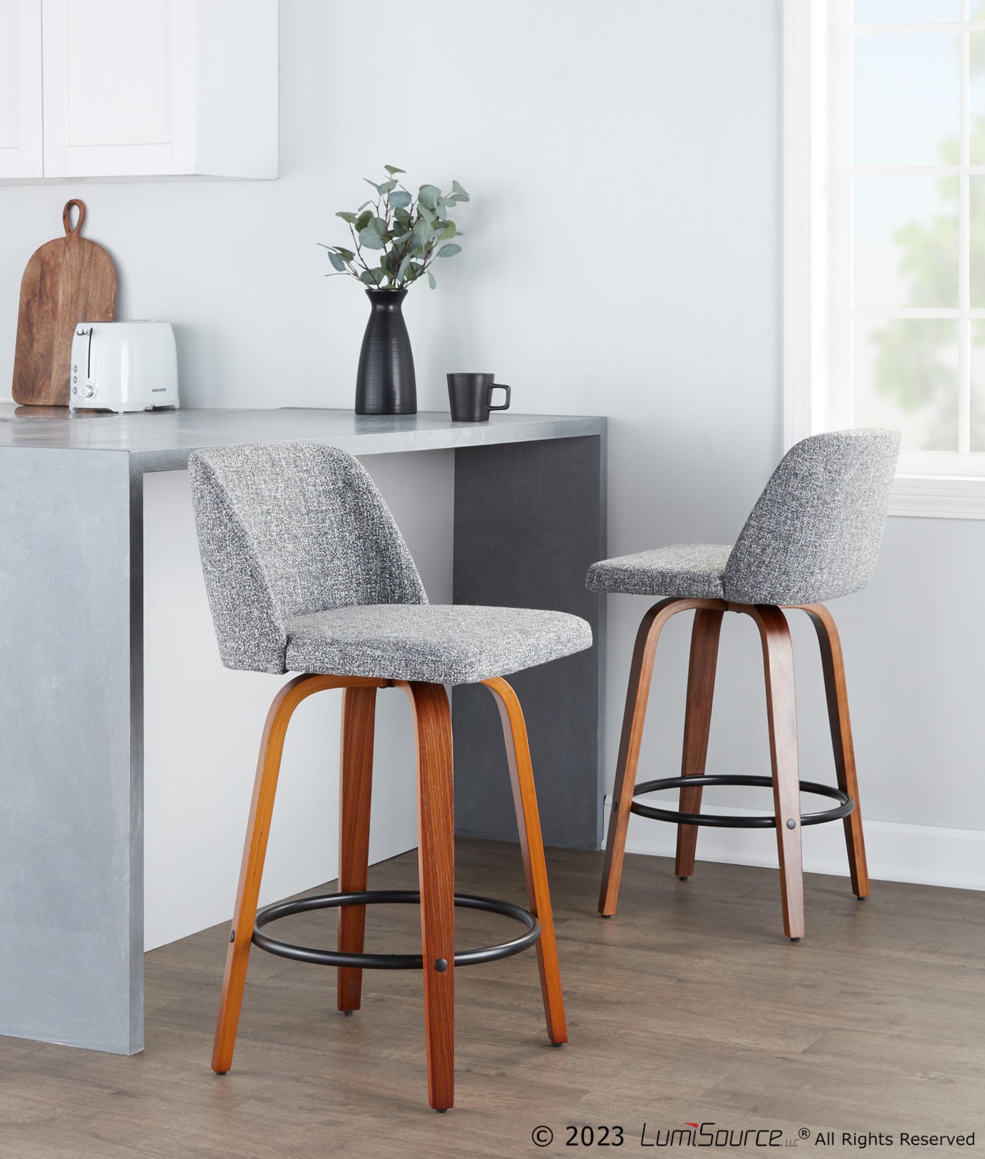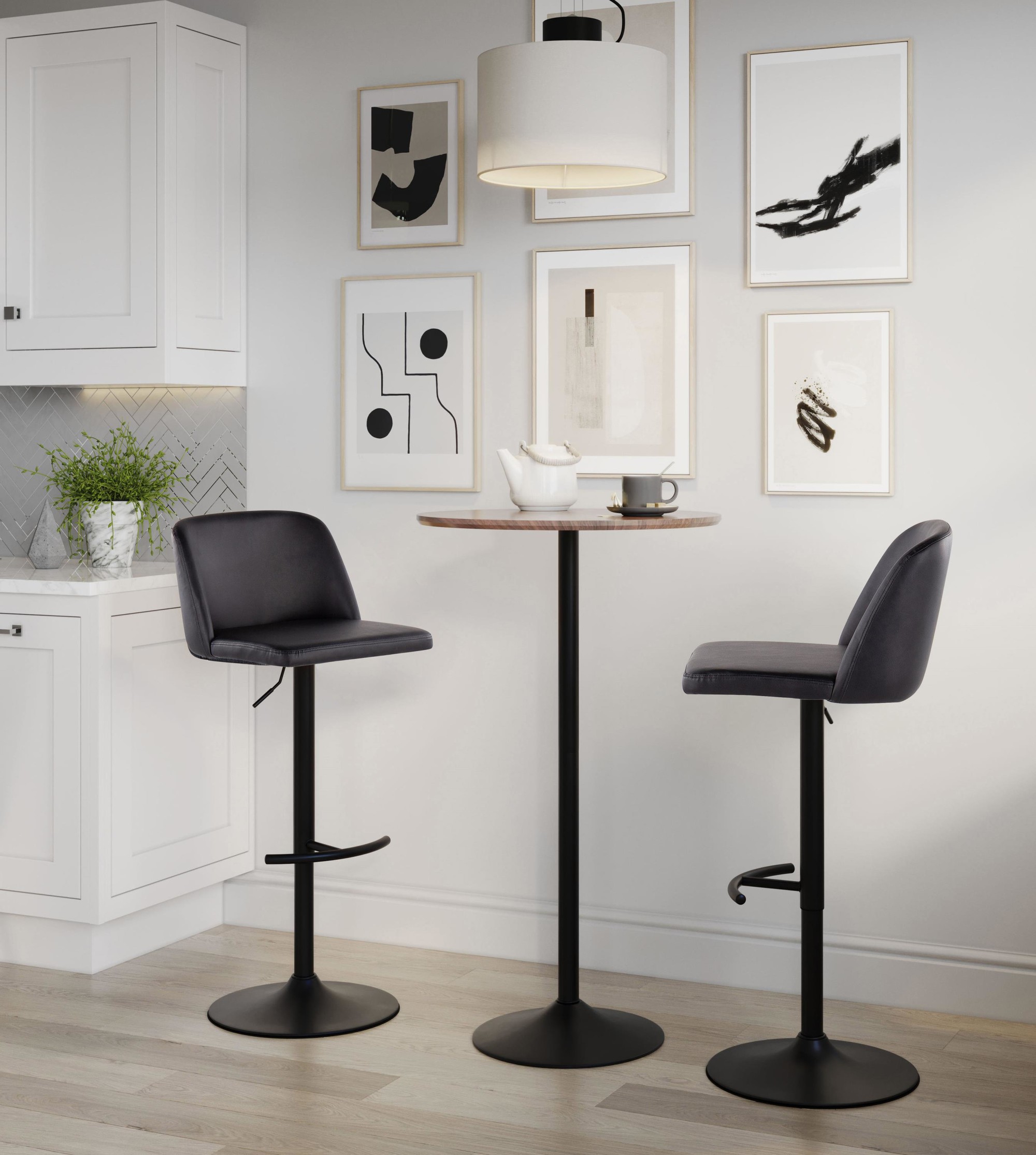 Toriano Black Steel Grey Faux Leather Contemporary Bar Stools (Set of 2)