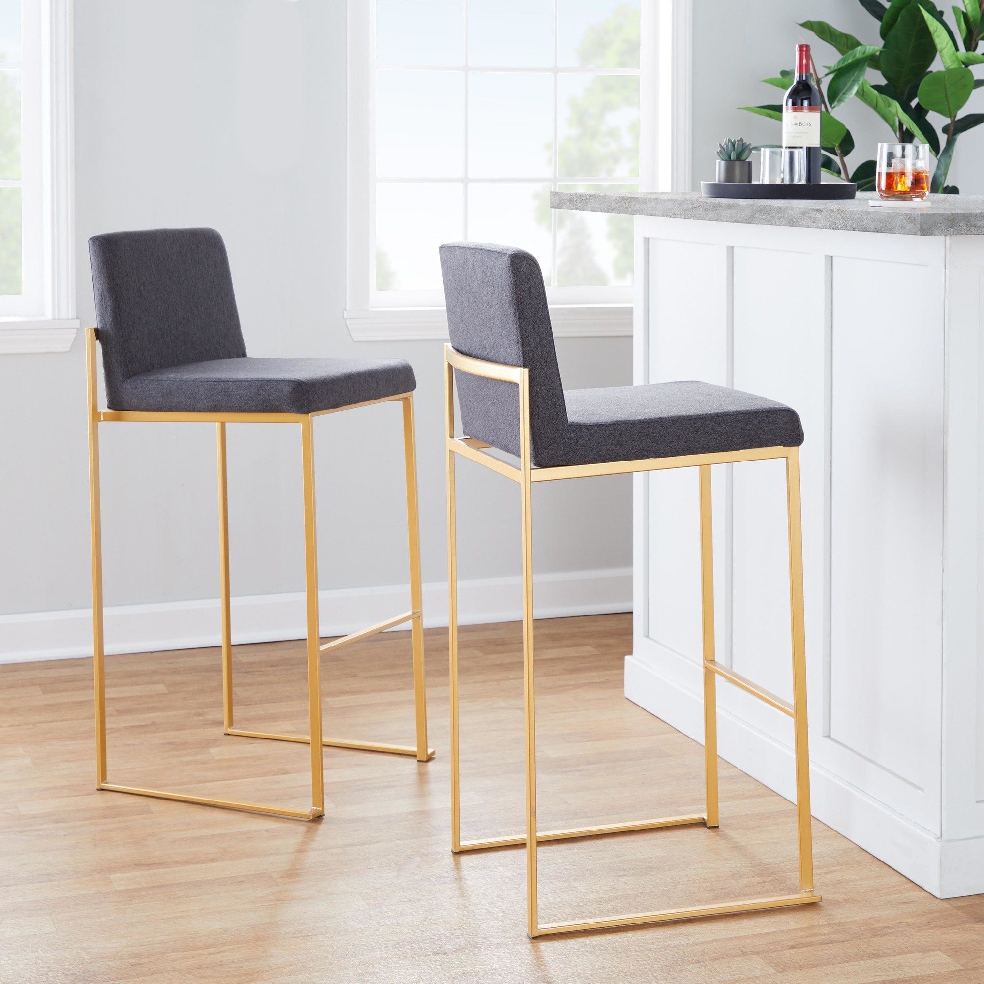 Toriano Mid-Century Modern Walnut and Grey Counter Stool (Set of 2)