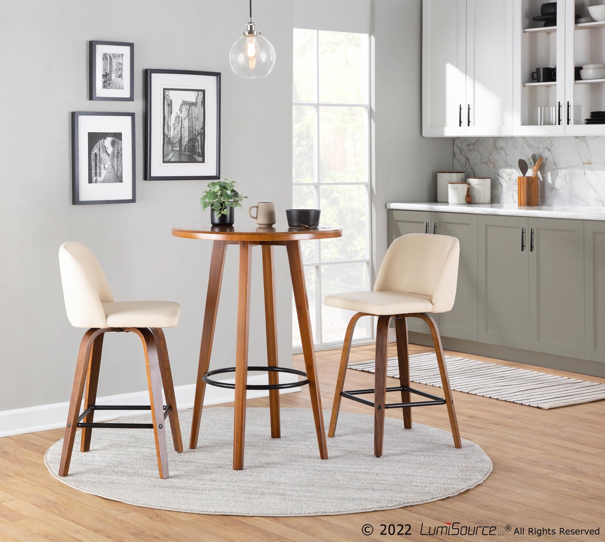 Toriano Black Steel Cream Faux Leather Contemporary Bar Stools (Set of 2)