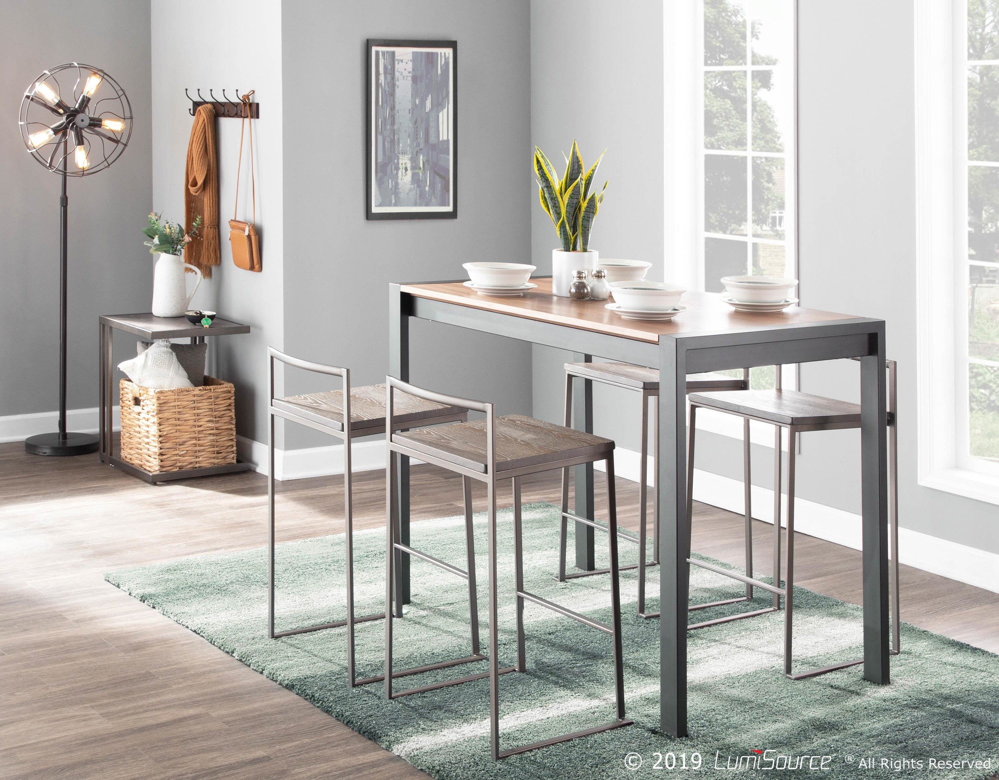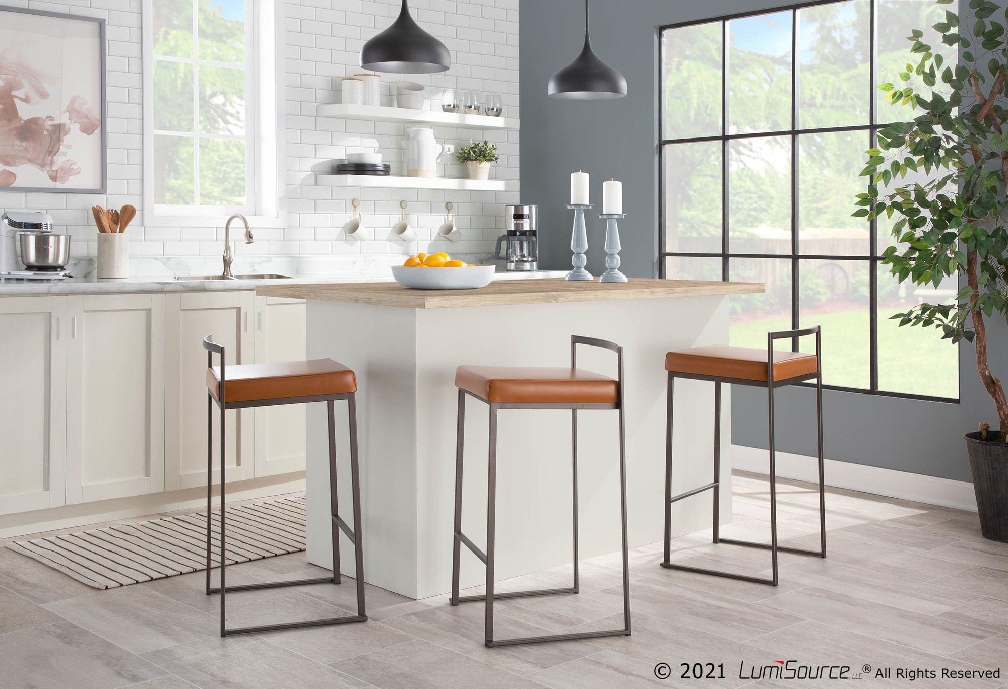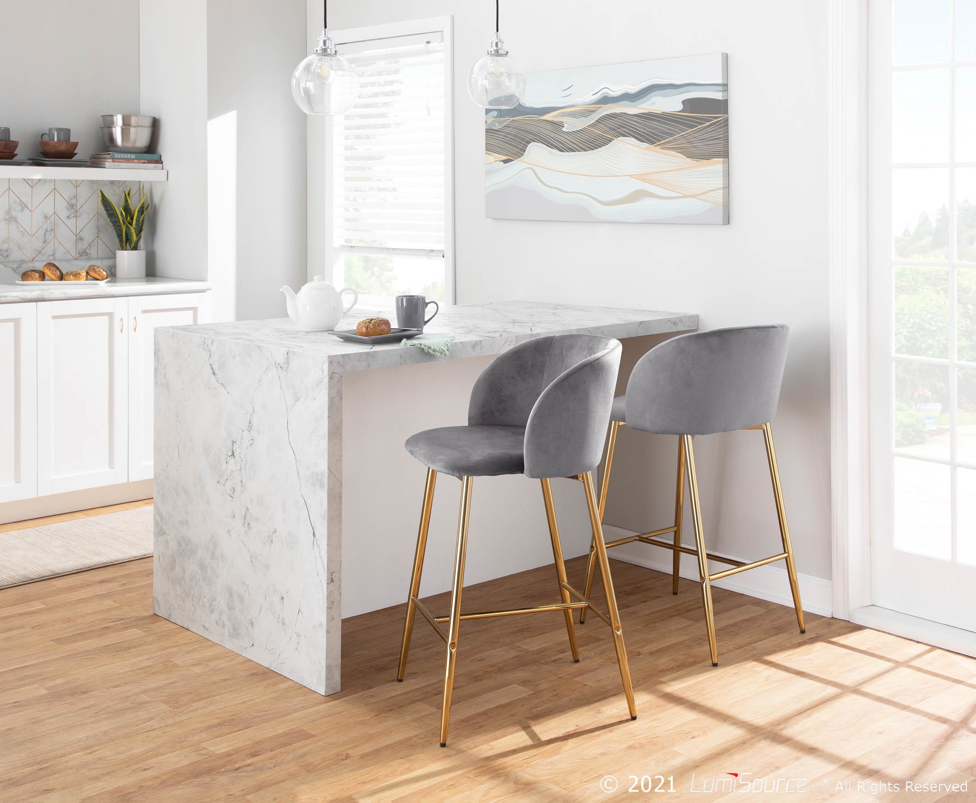 Rhonda Art Deco Black Steel Charcoal Fabric Counter Stools (Set of 2)