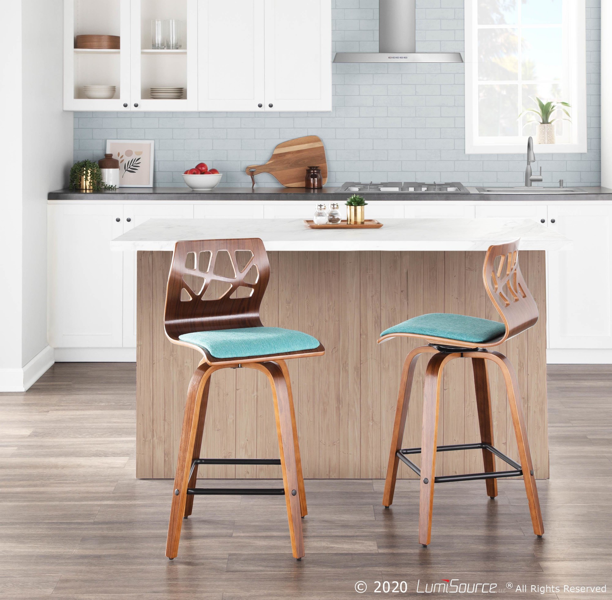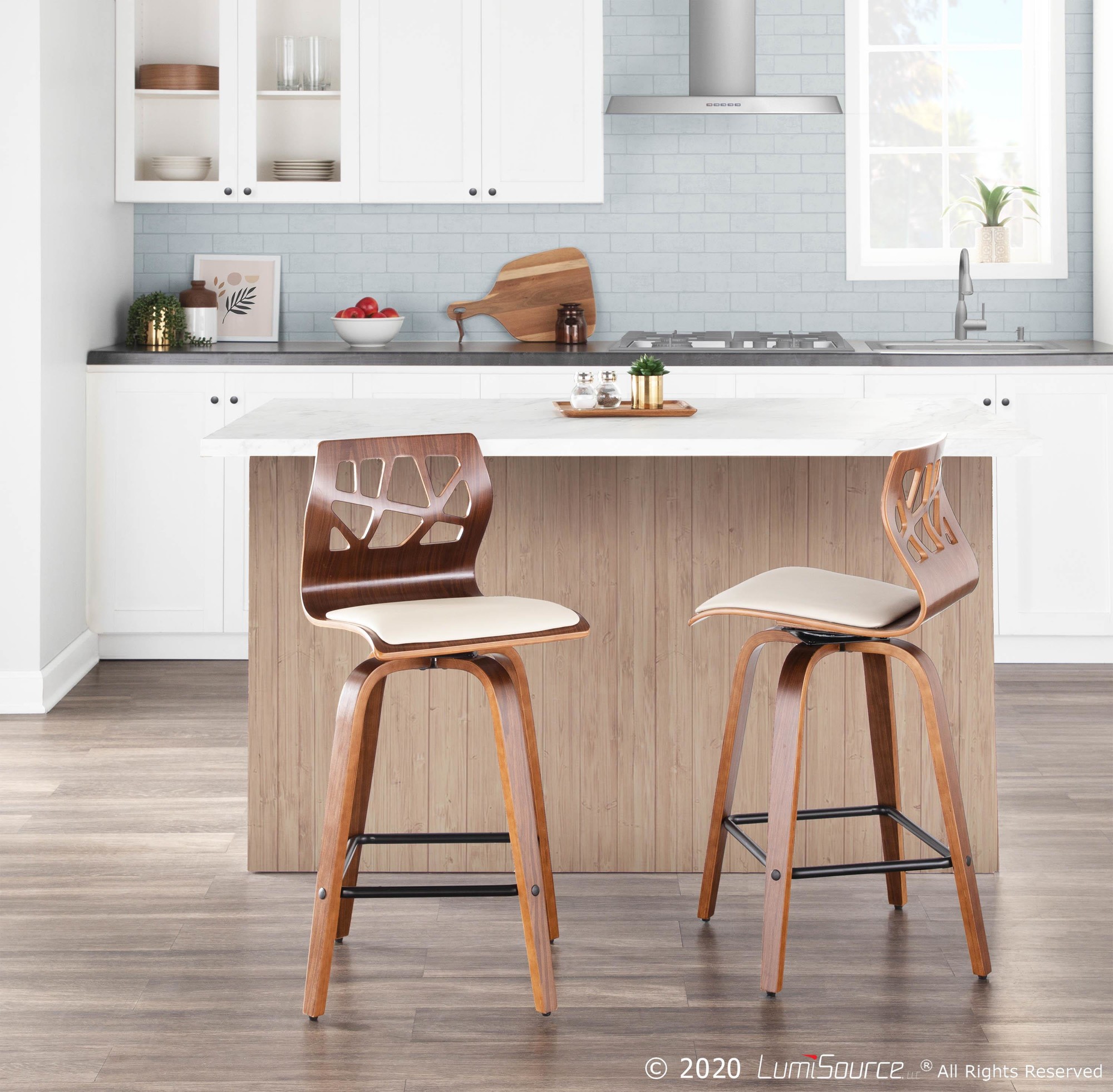 Pino Mid-Century Modern Walnut and Cream Bar Stools (Set of 2)