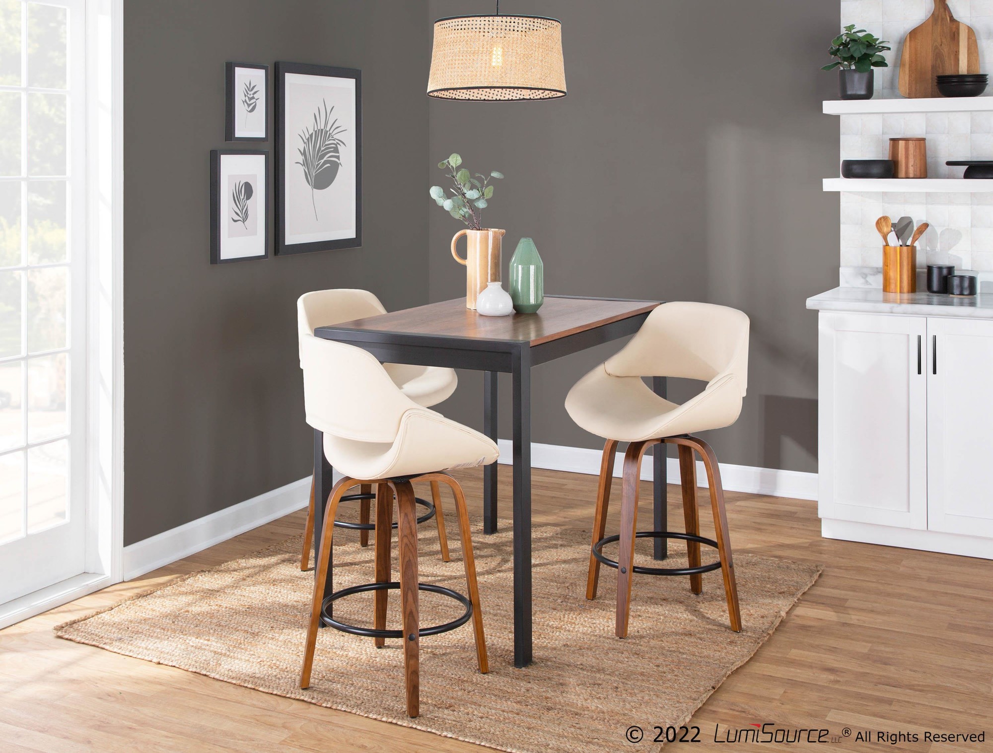 Oracle Walnut Bamboo Cream Faux Leather Mid-Century Counter Stool