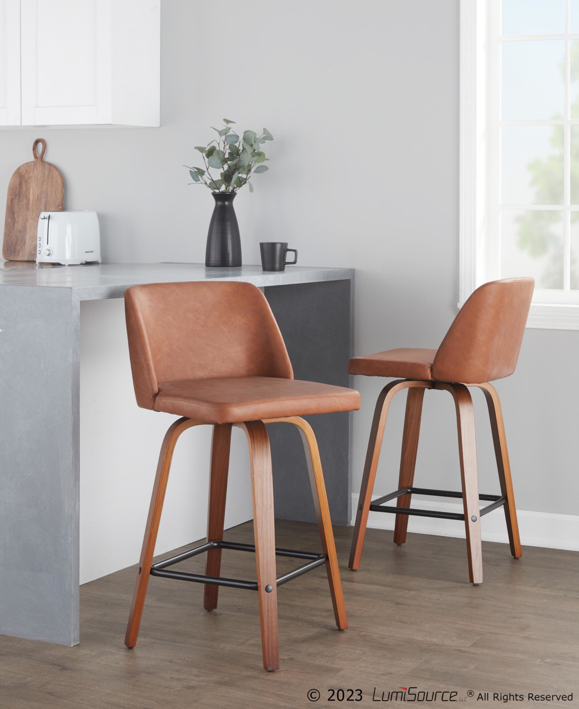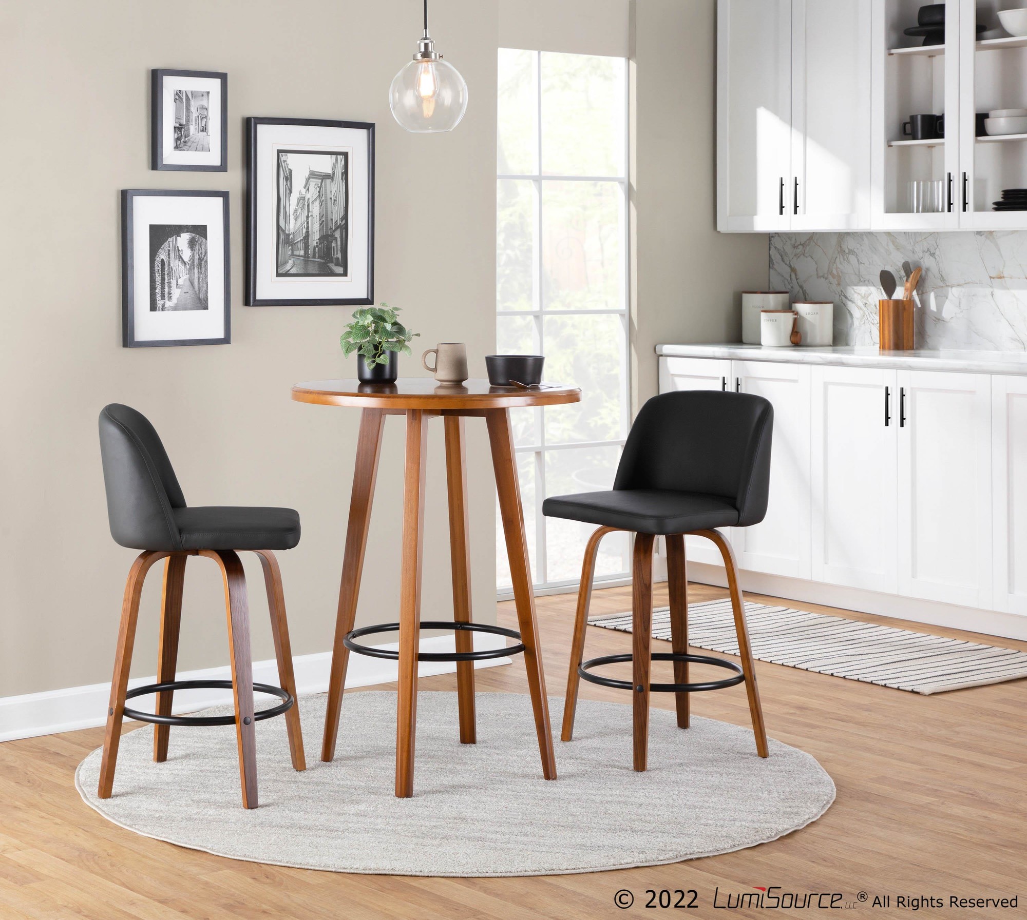 Toriano Black Faux Leather Contemporary Adjustable Bar Stools (Set of 2)