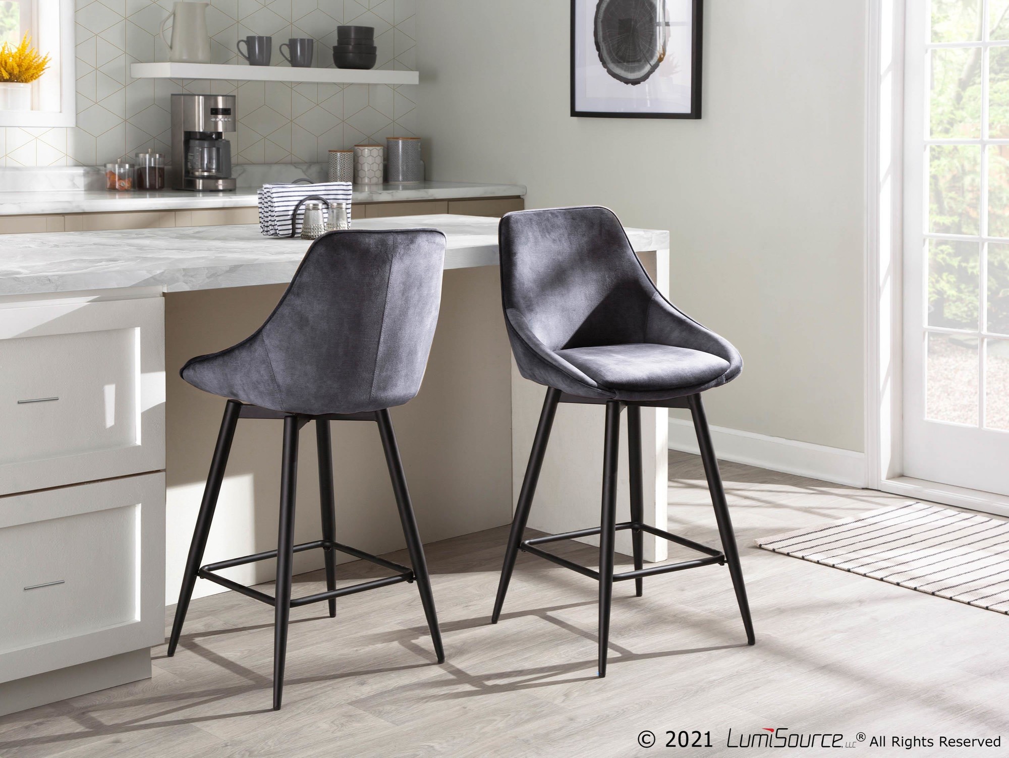 Matisse Glam Black Velvet Gold Contemporary 26-Inch Counter Stools (Set of 2)