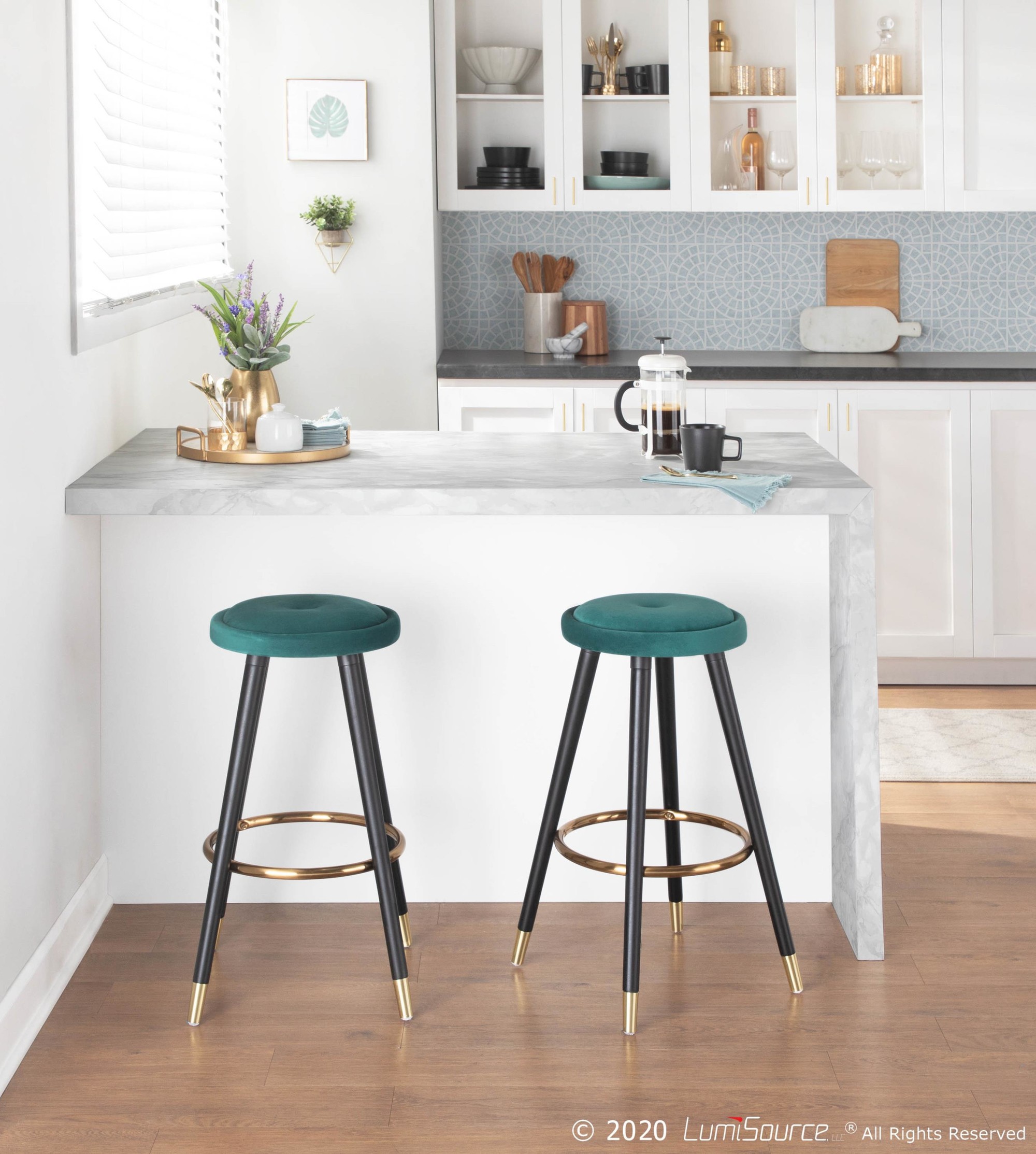 Mara Contemporary Black Steel and Camel Bar Stools (Set of 2)
