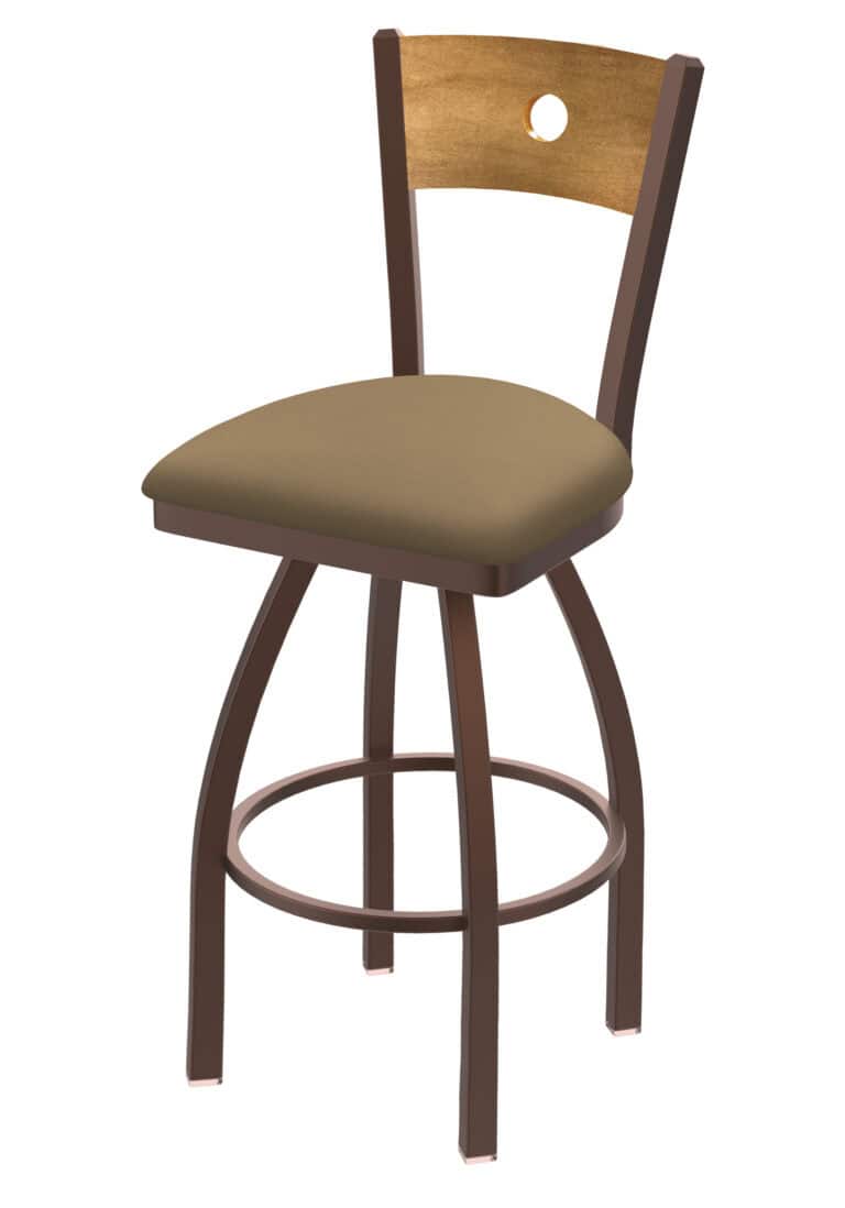 30-Inch Steel Swivel Bar Stool with Bronze Finish, Canter Bordeaux 2.5-Inch Cushion Seat, Padded Back, and Single-Ring Base