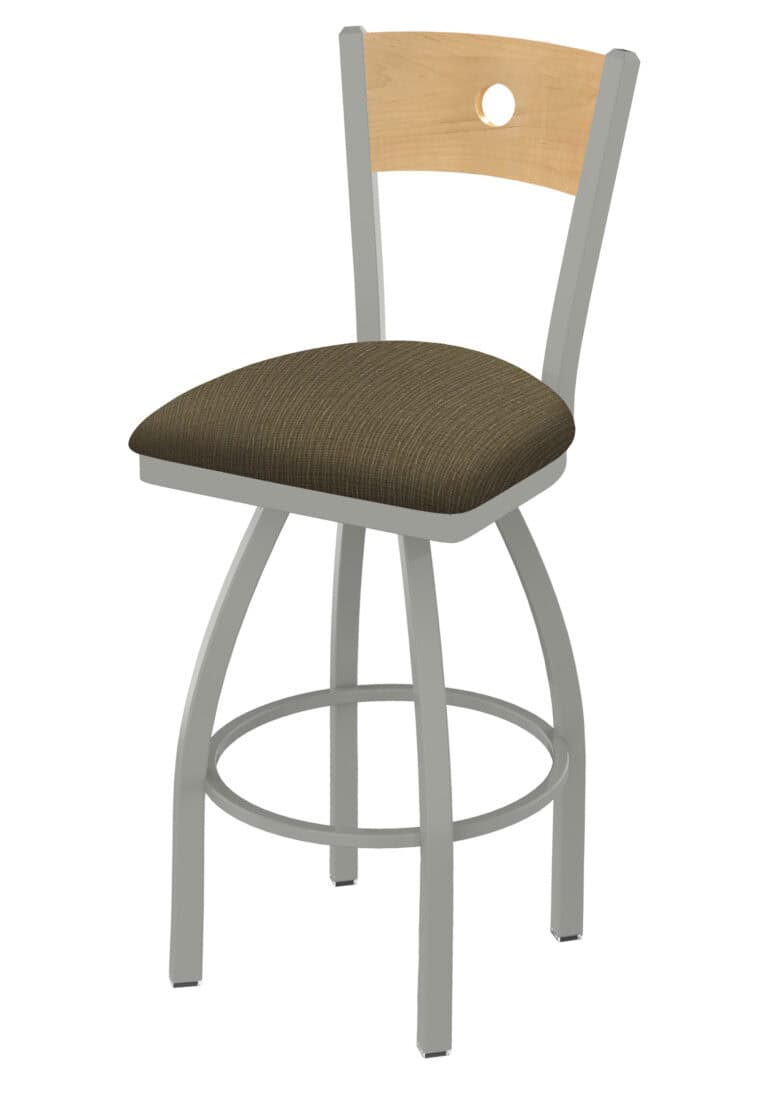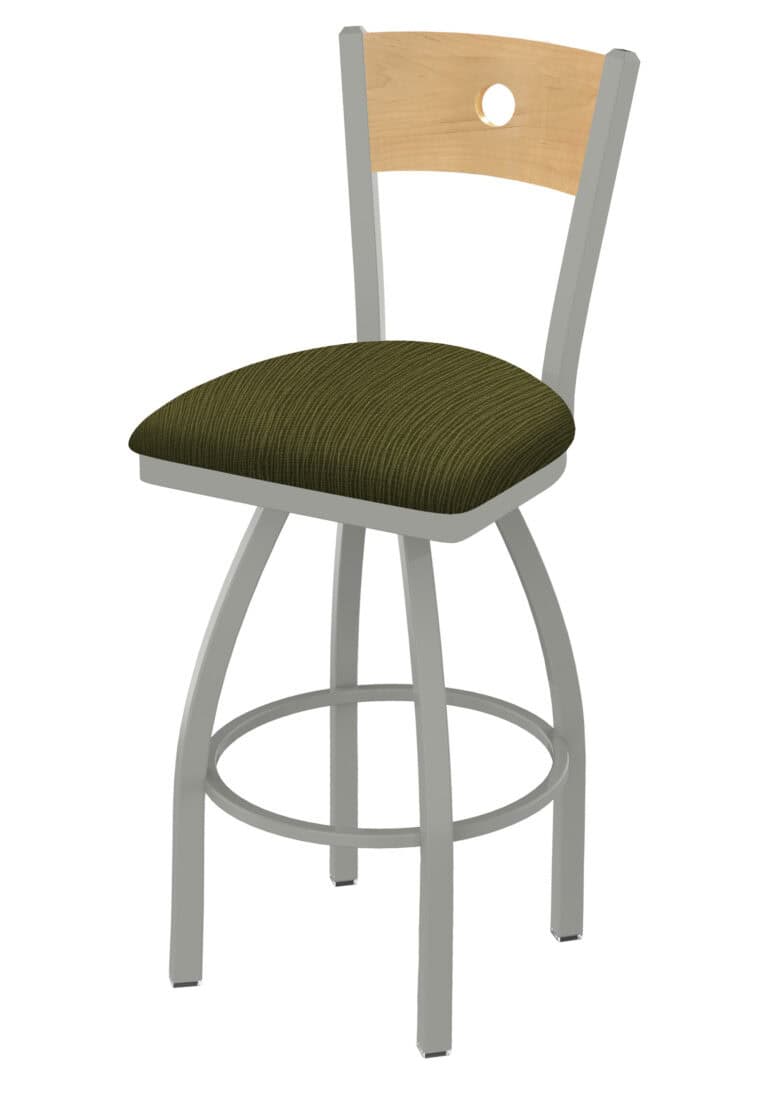 30-Inch Steel Swivel Bar Stool with Black Wrinkle Finish, Graph Tidal 2.5-Inch Cushion Seat, Padded Back, and Single-Ring Base