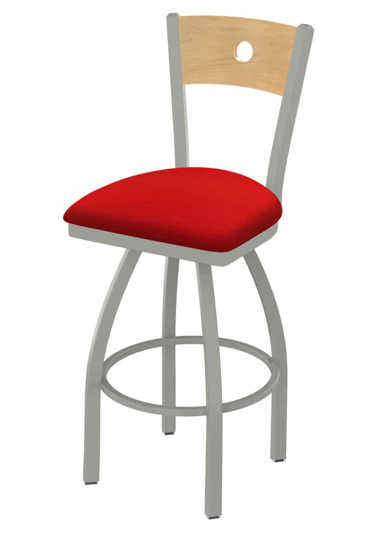 30-Inch Steel Swivel Bar Stool with Black Wrinkle Finish, Graph Poppy 2.5-Inch Cushion Seat, Padded Back, and Single-Ring Base