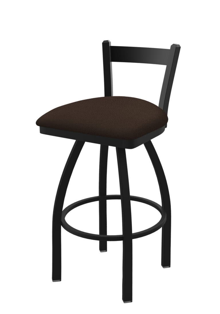25-Inch Steel Swivel Counter Stool with Bronze Finish, Dark Cherry Maple Solid Maple Wood Seat, Padded Back, and Single-Ring Base