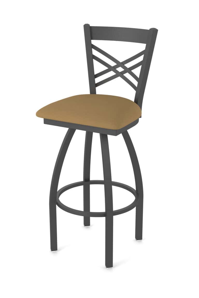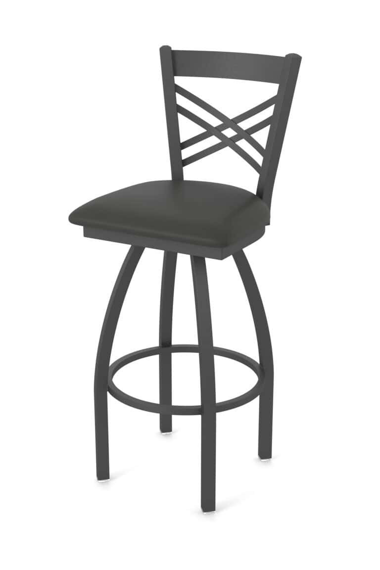 25-Inch Steel Swivel Counter Stool with Anodized Nickel Finish, Dark Cherry Oak Solid Oak Wood Seat, Padded Back, and Single-Ring Base