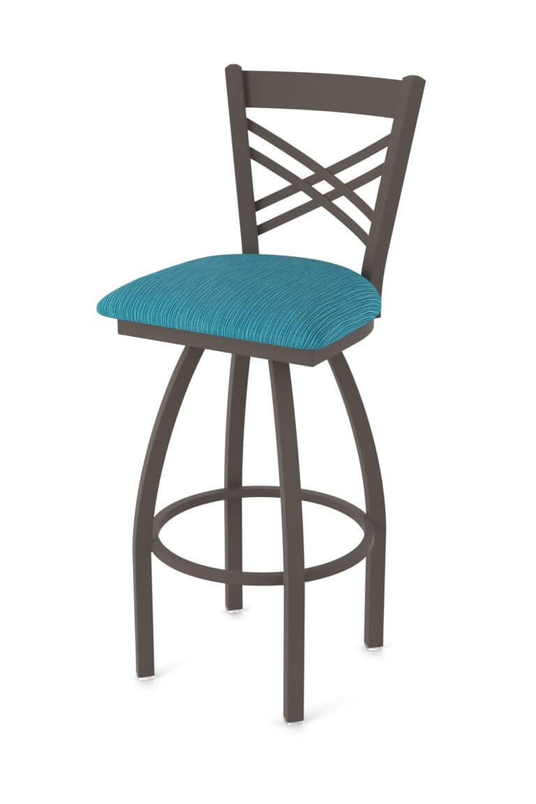25-Inch Steel Swivel Counter Stool with Anodized Nickel Finish, Graph Tidal 2.5-Inch Cushion Seat, Padded Back, and Single-Ring Base
