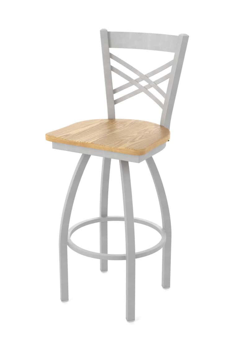 25-Inch Steel Swivel Counter Stool with Anodized Nickel Finish, Canter Sand 2.5-Inch Cushion Seat, Padded Back, and Single-Ring Base