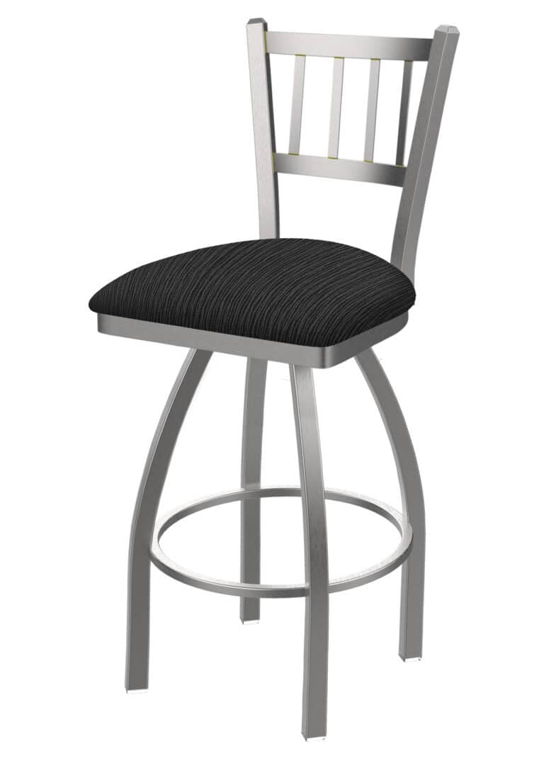 36-Inch Steel Swivel Bar Stool with Black Wrinkle Finish, Black Vinyl 2.5-Inch Cushion Seat, Low Curved Padded Back, and Single-Ring Base
