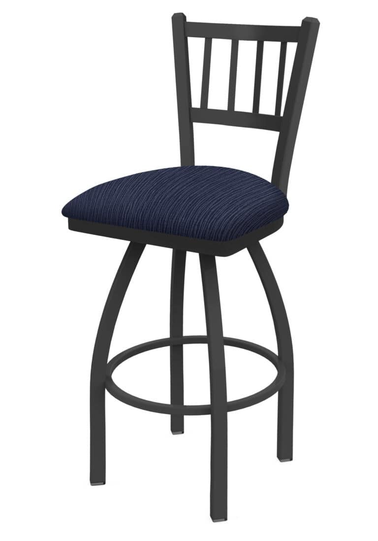 36-Inch Steel Swivel Bar Stool with Black Wrinkle Finish, Graph Cork 2.5-Inch Cushion Seat, Low Curved Padded Back, and Single-Ring Base