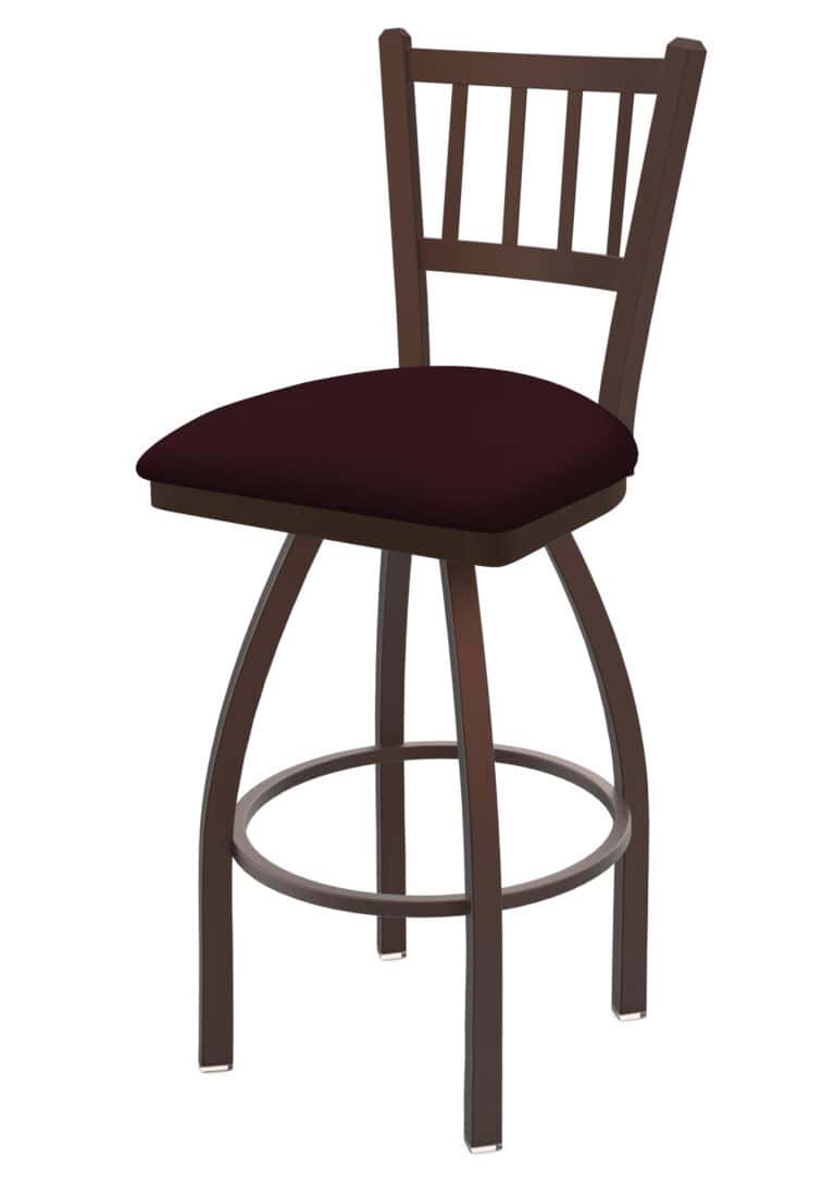 36-Inch Steel Swivel Bar Stool with Black Wrinkle Finish, Canter Red 2.5-Inch Cushion Seat, Low Curved Padded Back, and Single-Ring Base