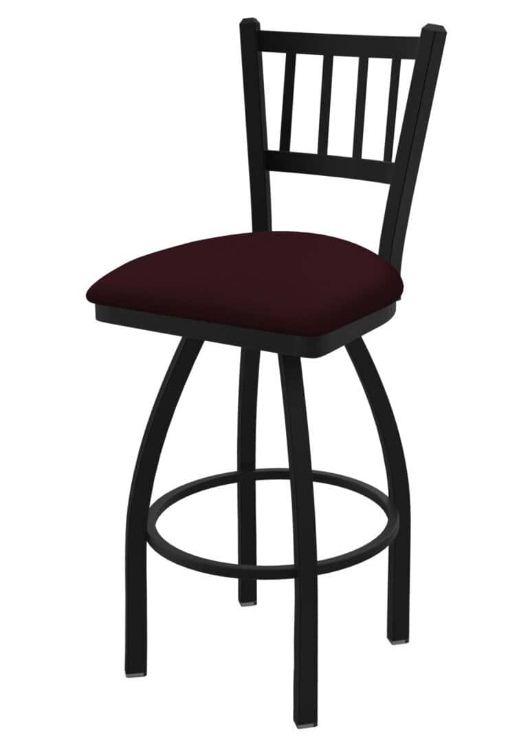 36-Inch Steel Swivel Bar Stool with Black Wrinkle Finish, Canter Bordeaux 2.5-Inch Cushion Seat, Low Curved Padded Back, and Single-Ring Base