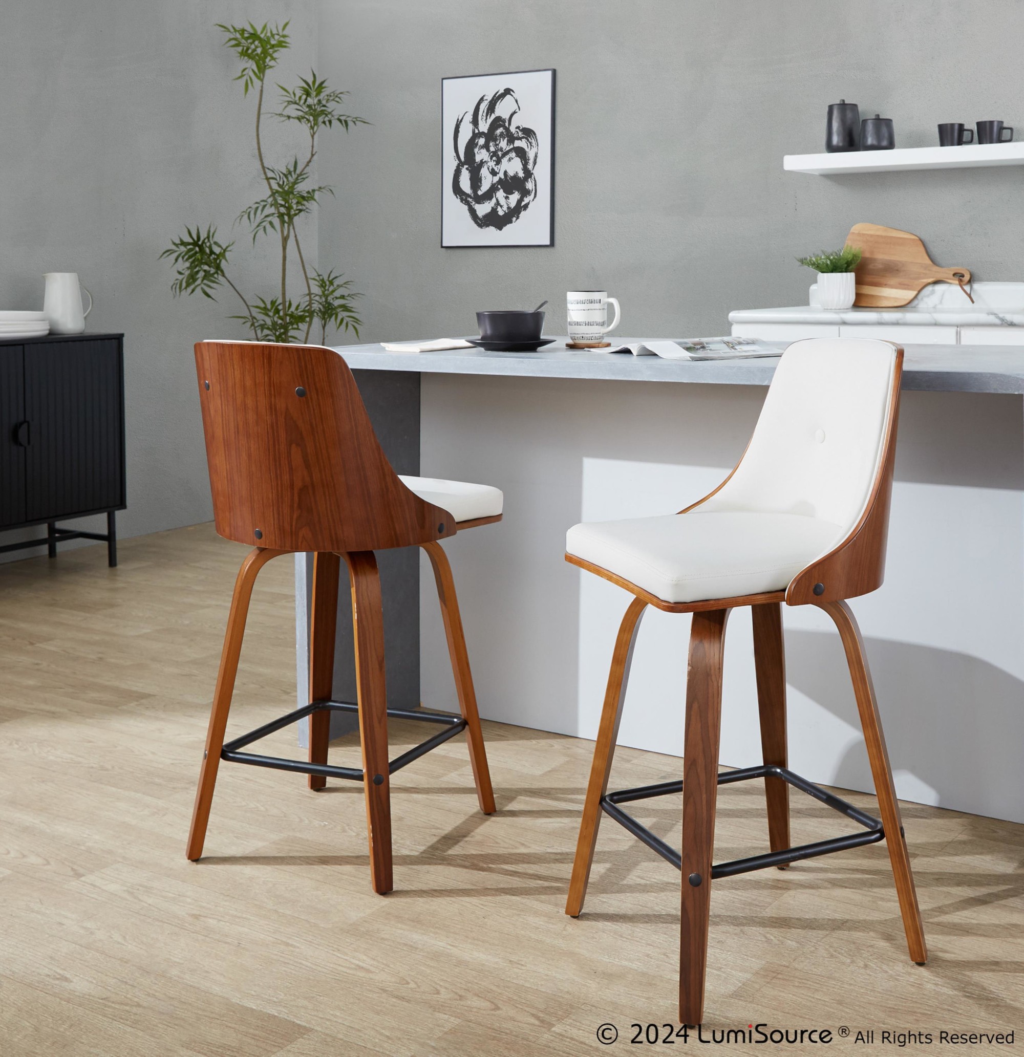 Toriano 26-Inch Walnut Cream Mid-Century Counter Stools (Set of 2)