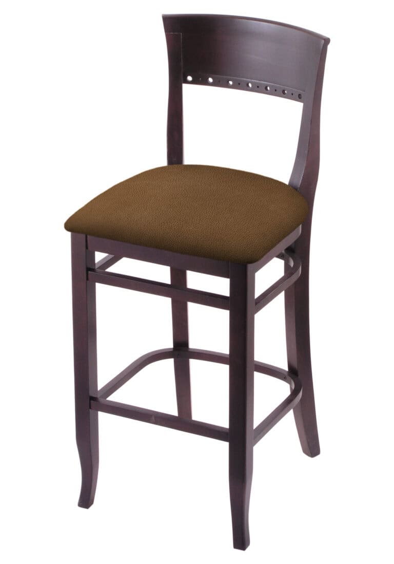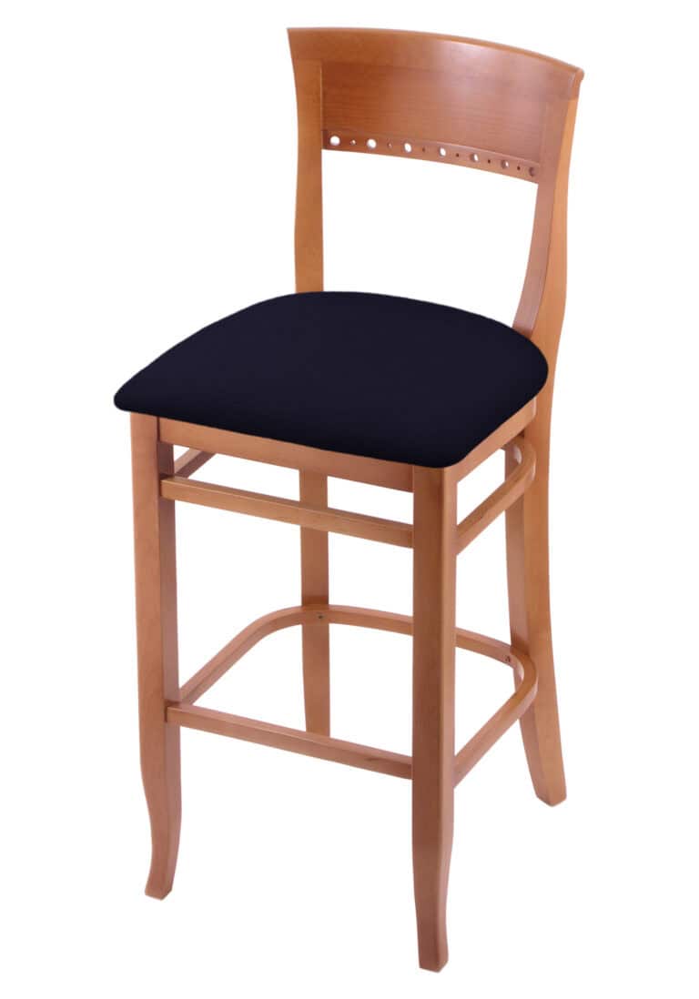 Hampton 30-Inch Wood Bar Stool with Natural Finish, Graph Poppy Wood Seat, and Curved Decorative Back