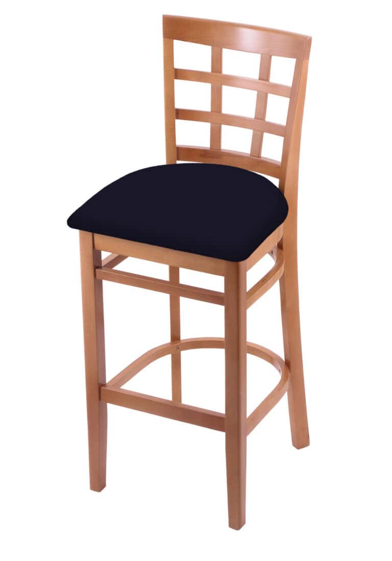 Hampton 25-Inch Wood Counter Stool with Natural Finish, Graph Chalice 2.5-Inch Cushion Seat Seat, and Curved Decorative Back