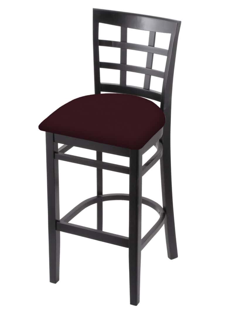 Hampton 25-Inch Wood Counter Stool with Natural Finish, Canter Red 2.5-Inch Cushion Seat Seat, and Curved Decorative Back