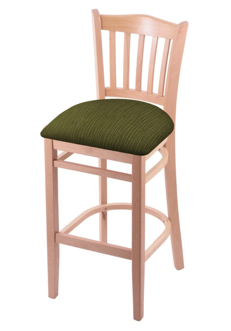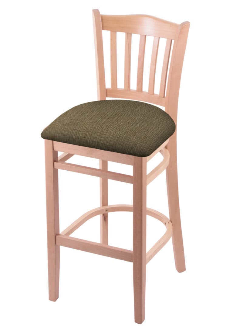 Hampton 25-Inch Wood Counter Stool with Dark Cherry Finish, Rein Thatch 2.5-Inch Cushion Seat Seat, and Curved Decorative Back