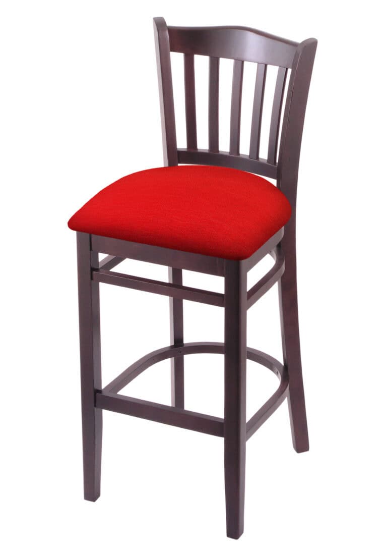 Hampton 25-Inch Wood Counter Stool with Dark Cherry Finish, Graph Ruby 2.5-Inch Cushion Seat Seat, and Curved Decorative Back