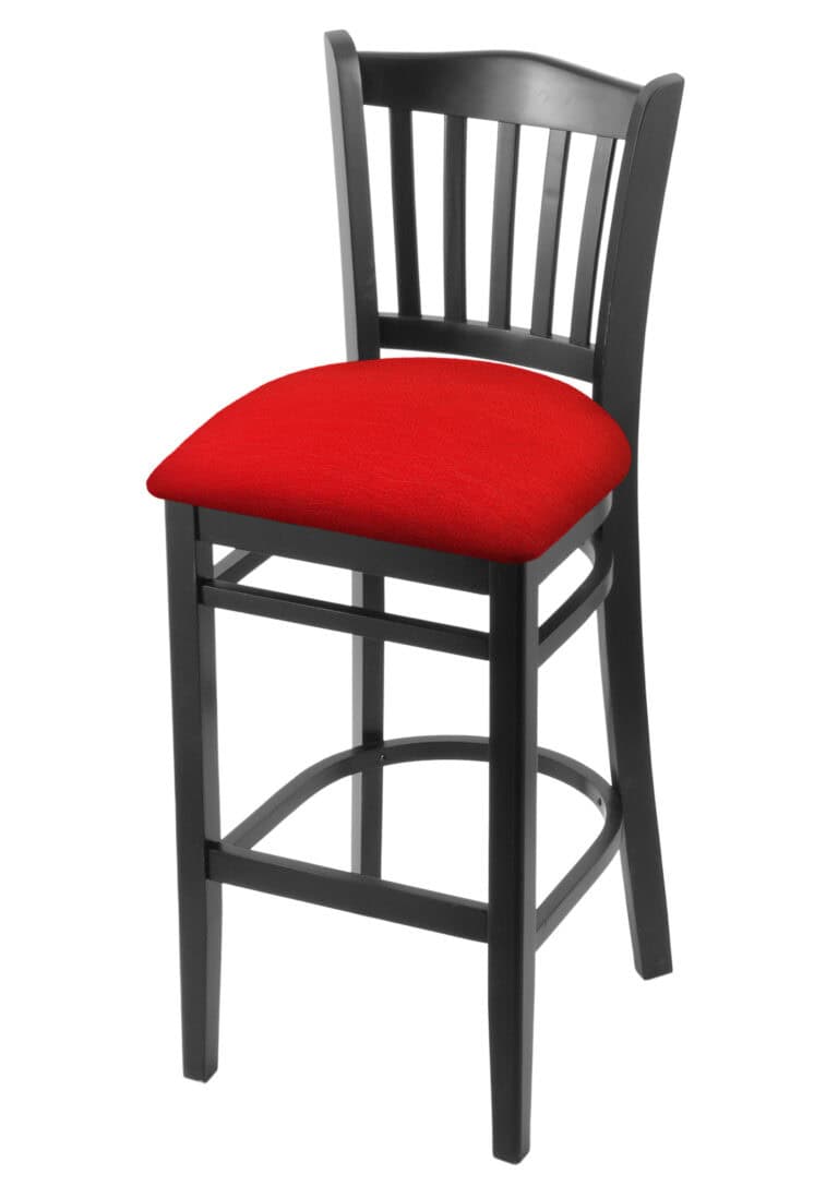 Hampton 25-Inch Wood Counter Stool with Dark Cherry Finish, Canter Red 2.5-Inch Cushion Seat Seat, and Curved Decorative Back
